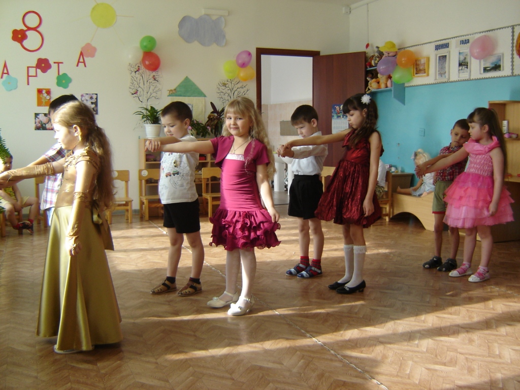 Мальчики поздравляли своих подружек. Приготовили им поздравление, угостили конфетами и пригласили на танец «Весенний».