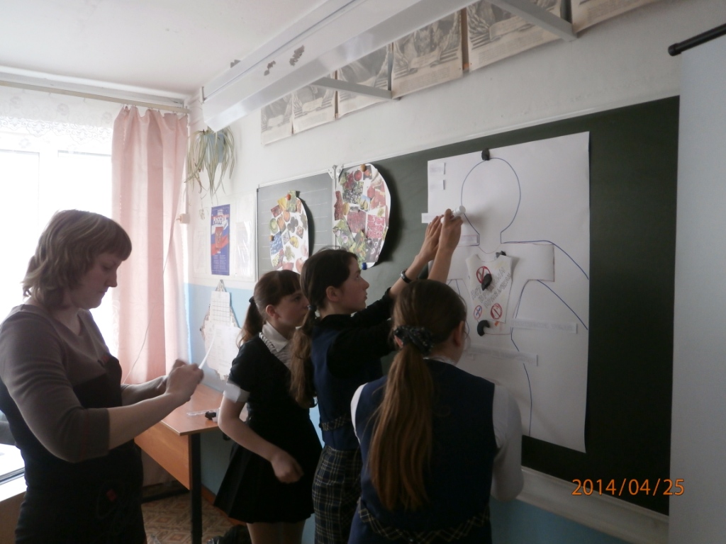 - Гаврикова Е. В. – классный час в 7 классе по теме «Жить здорово», конструировали модель здорового человека;