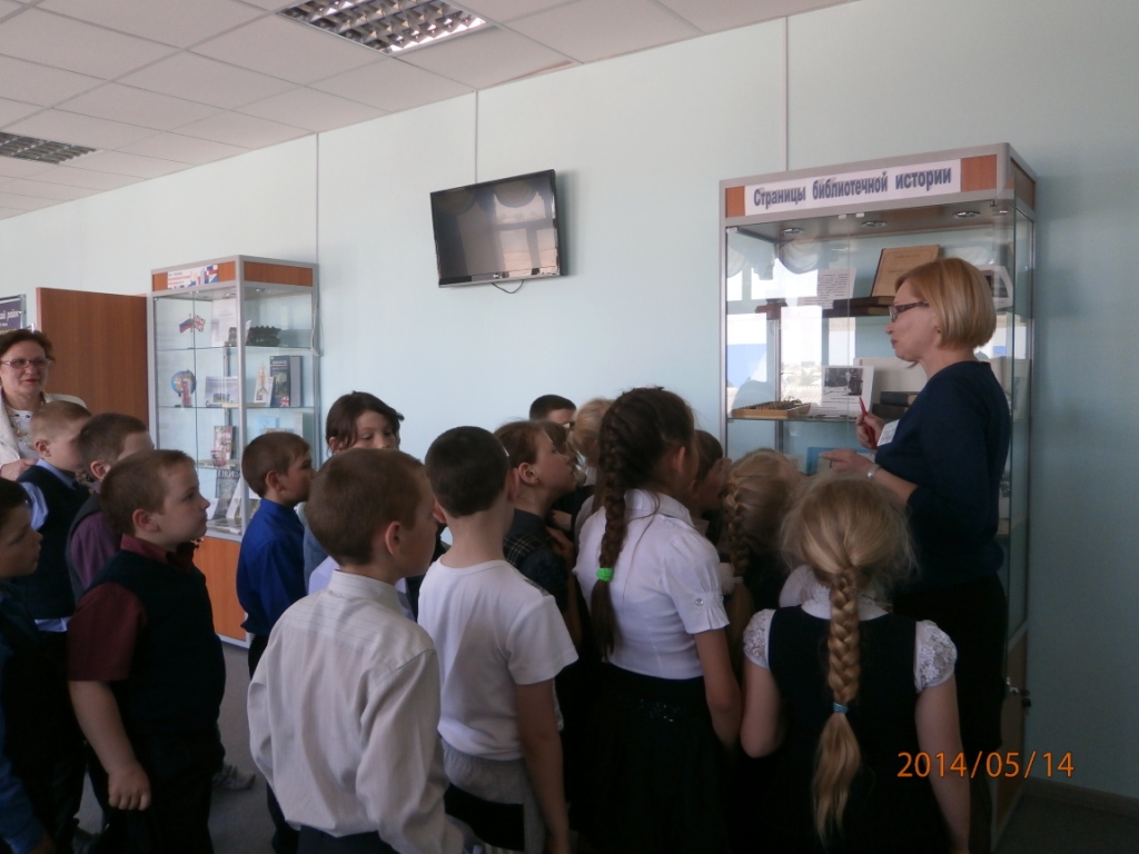 15 мая 2014 года в рамках организации внеурочной деятельность по программе кружка «Основы информационной деятельности» учащиеся начальных классов побывали с экскурсией в центральной районной библиотеке и детской библиотеке. Работники библиотеки провели с учащимися интересную увлекательную экскурсию. Детей сопровождала сельский библиотекарь Константинова А. С. И учитель начальных классов Кочнева Г. А.