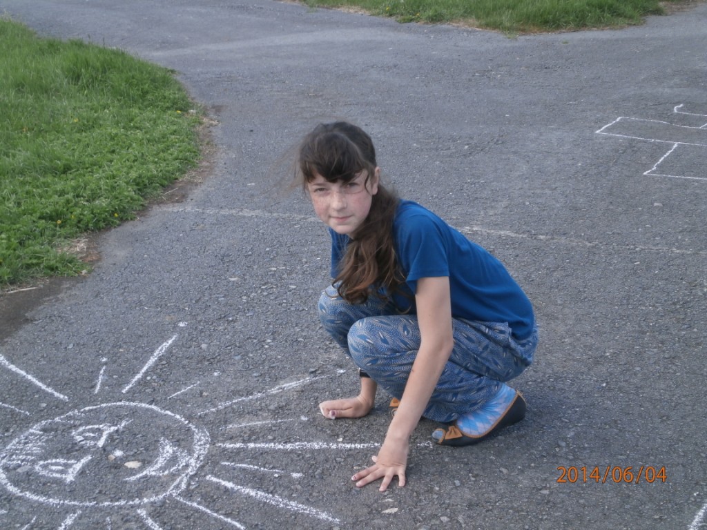 Участвовали в конкурсе рисунков на асфальте «А что это такое?». Конкурс был веселым и интересным.