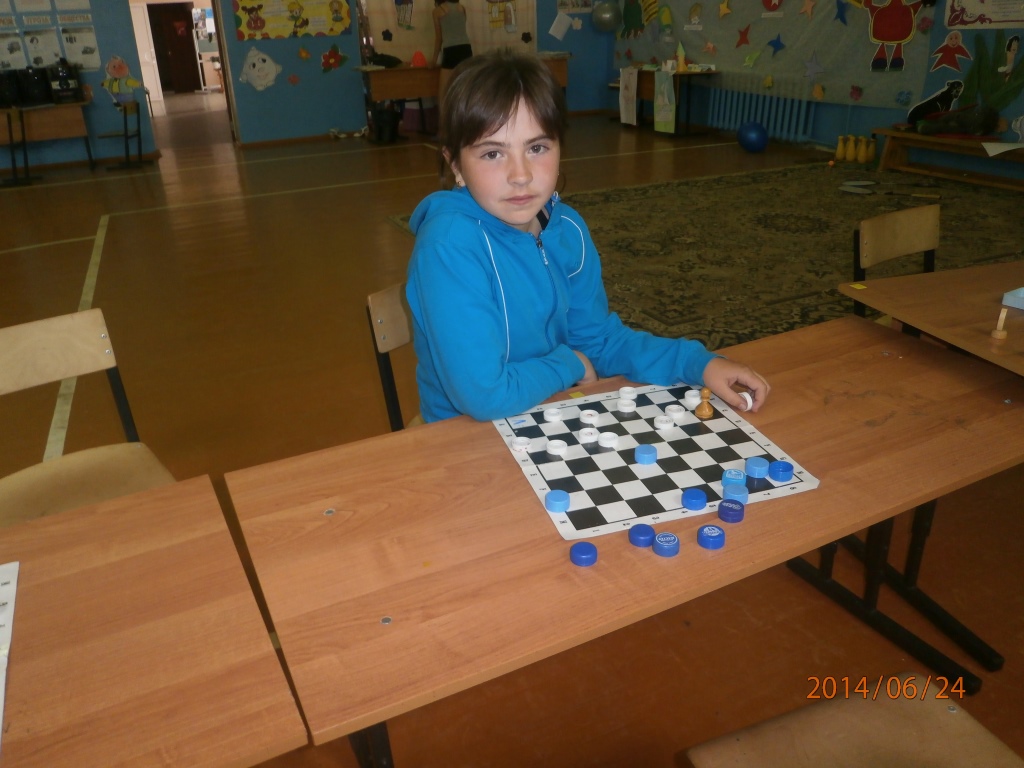 Кроме этого, ребята участвовали в шашечном турнире. Турнирная лестница распределилась следующим образом: 1 место – Ершова Наташа, 2 место – Сысунина Полина, 3 место – Плесовских Наташа.