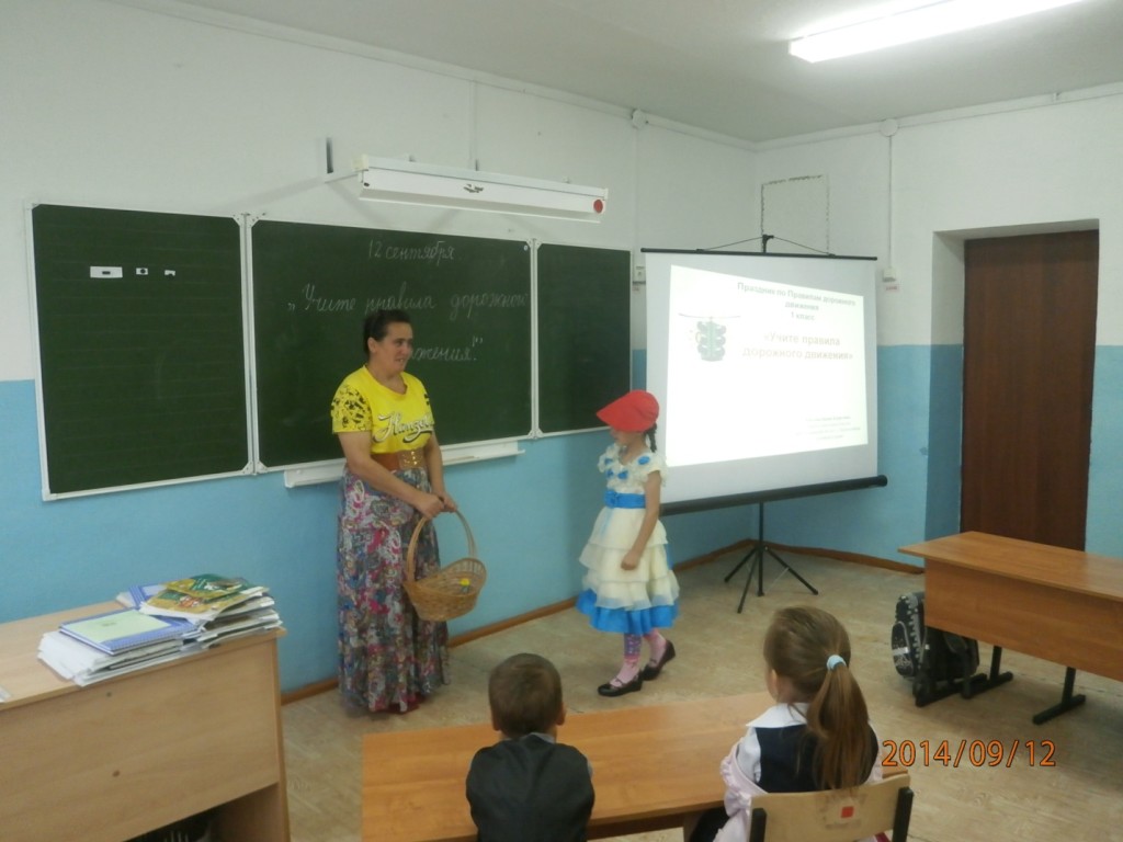 Мероприятие было построено в нетрадиционной форме — праздника. В классном часе принимали участие не только дети, но и родители. Они разыграли сценку о правилах дорожного движения «Красная шапочка», где роль мамы Красной шапочки играла родительница — Соколова Л.А., роль Красной шапочки исполняла Соколова Надя, ученица 1 класса, а роль полицейского — Клименко Никита, ученик 2 класса.