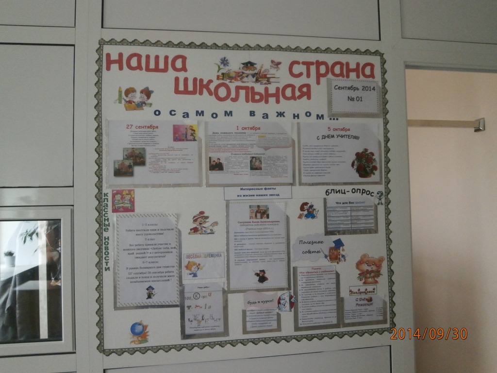 Каждая рубрика включает в себя различные новости, которые актуальны на сегодняшний день. Например, приближается праздник, посвященный Дню пожилых людей, Дню учителя.