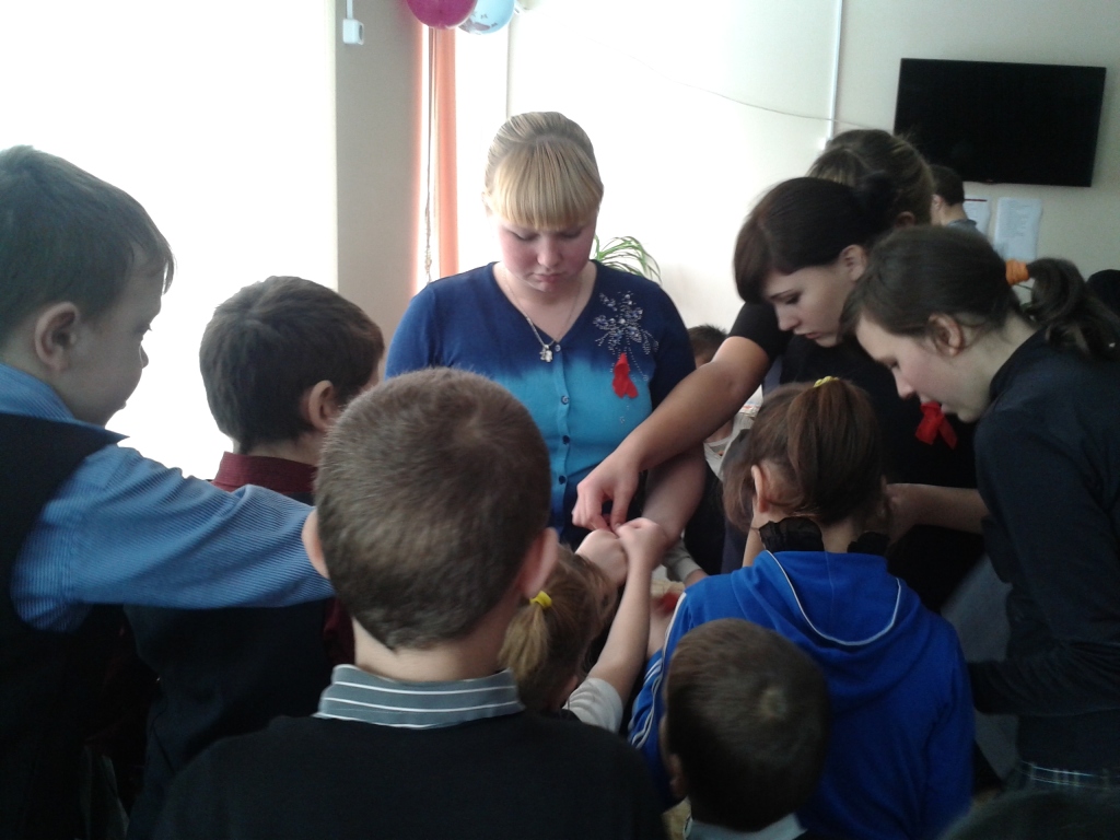 - Волонтеры провели линейку, акция «Красная ленточка», которая является символом борьбы против СПИДа;
