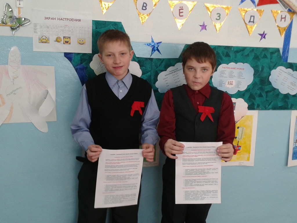 1 декабря во всем мире отмечается День борьбы со СПИДом. И в нашей школе в этот день прошло мероприятие под лозунгом «Достижение нулевой отметки: ноль новых ВИЧ-инфекций. Ноль дискриминаций. Ноль смертей в следствии СПИДа» с целью привлечения внимания школьников к проблеме СПИДа.