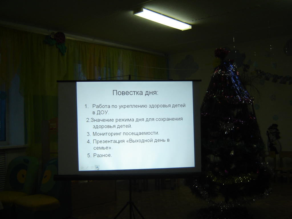 29 декабря в ОДО детский сад «Золотой петушок» состоялась встреча с родителями в виде круглого стола по теме «Совместная работа ДОУ и семьи по укреплению здоровья детей». Воспитатели рассказали родителям о своей работе по укреплению здоровья детей в условиях детского сада и значении режима дня в жизни ребёнка. Были показаны слайды о двигательной активности детей в течение всего дня. Директор школы рассказала присутствующим о проведённом мониторинге заболеваемости за пришедший год. Родители активно участвовали в обсуждении данной темы, отвечали на вопросы предложенной анкеты. Родители поделились опытом закаливания детей и показали презентации «Выходной день в семье». Было решено продолжать работу по укреплению здоровья детей и профилактике простудных заболеваний совместными усилиями ДОУ и семьи.