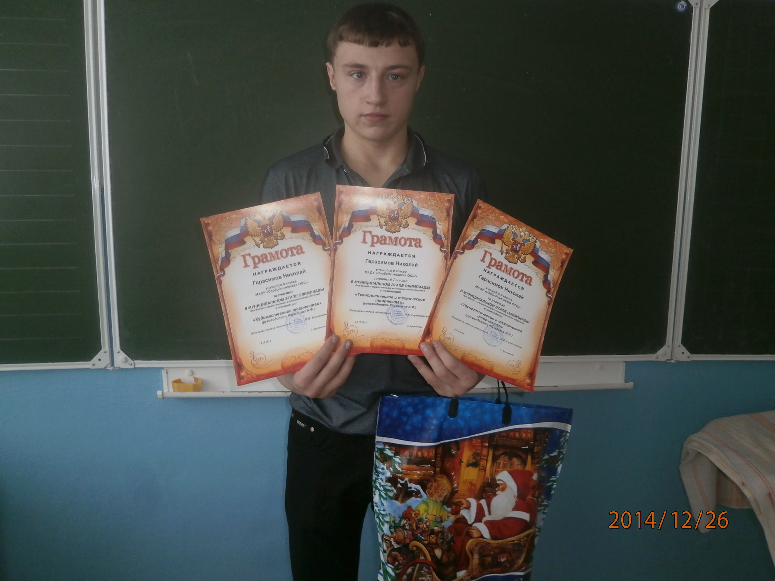 Ученик 9 класса МАОУ «Слободчиковской ООШ» Герасимов Николай участвовал в муниципальном этапе олимпиады для детей с ограниченными возможностями здоровья в следующих номинациях: