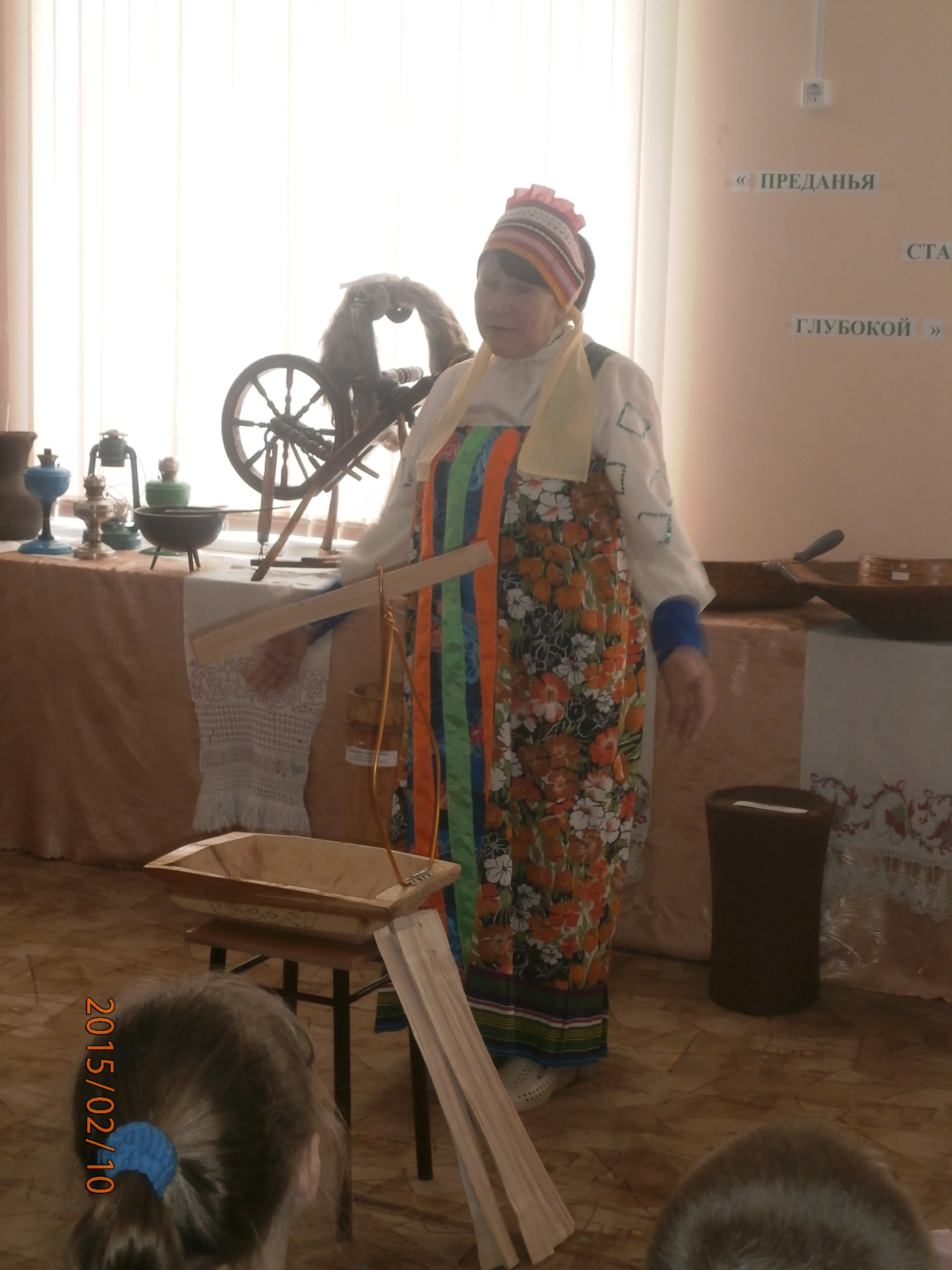 - Руководитель музея, ветеран труда Нина Петровна Филева рассказала о «Щепном товаре» и показала все товары, имеющиеся на выставке;