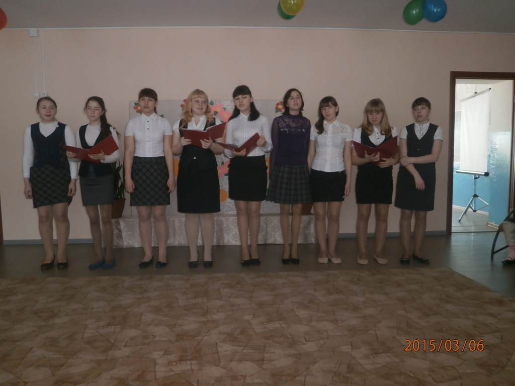 6 марта 2015 года накануне праздника «Международного женского дня» учащиеся школы с педагогом — организатором поздравили женщин с 8 Марта. В ходе мероприятия девушки показали сценку, учащиеся с 5-9 классы спели песню, рассказали стихи и станцевали танец. А так же женскому коллективу школы предоставили возможность спеть песню «Хорошее настроение». В завершении ученик 9 класса подарил цветы всем женщинам, работающим в нашей школе.
