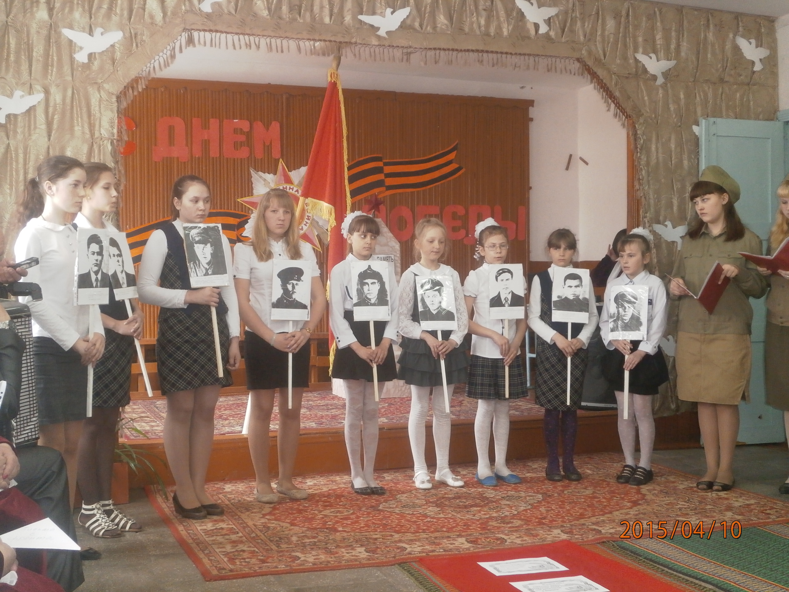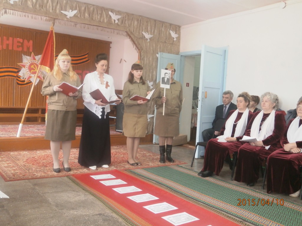 10 апреля 2015 года в ДК прошла встреча с ветеранами войны «Долгий путь к победе», посвященная 70-летию Победы в Великой Отечественной войне. Мероприятие было подготовлено Филевой Н. П., руководителем Слободчиковской музейной комнаты и Ершовой О.К. педагогом организатором школы, при взаимодействии с Советом ветеранов, Слободчикоским ДК и с сельской администрацией. Ведущими были Филева Н.П. и ученицы 9 класса Лохнова Александра, Леонтьева Елена. Встреча началась с вноса знамени Победы. На данном мероприятии присутствовали учащиеся школы, приглашенные и самые почетные гости – это ветераны войны, их приветствовал глава Слободчиковского сельского поселения А. М. Клименко и вручил медали к 70-летию Победы. В ходе мероприятия было рассказано о наших земляках, участвовавших в основных сражениях Великой Отечественной войны. Воспоминаниями о фронтовых буднях поделился Петр Алексеевич Кочнев, который считает, что об этом нужно рассказывать. Нужно, чтоб новое поколение знало и помнило. Мероприятие прошло на высокой патриотической ноте.