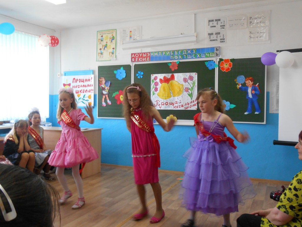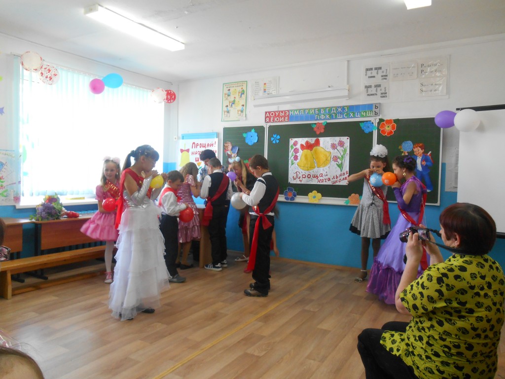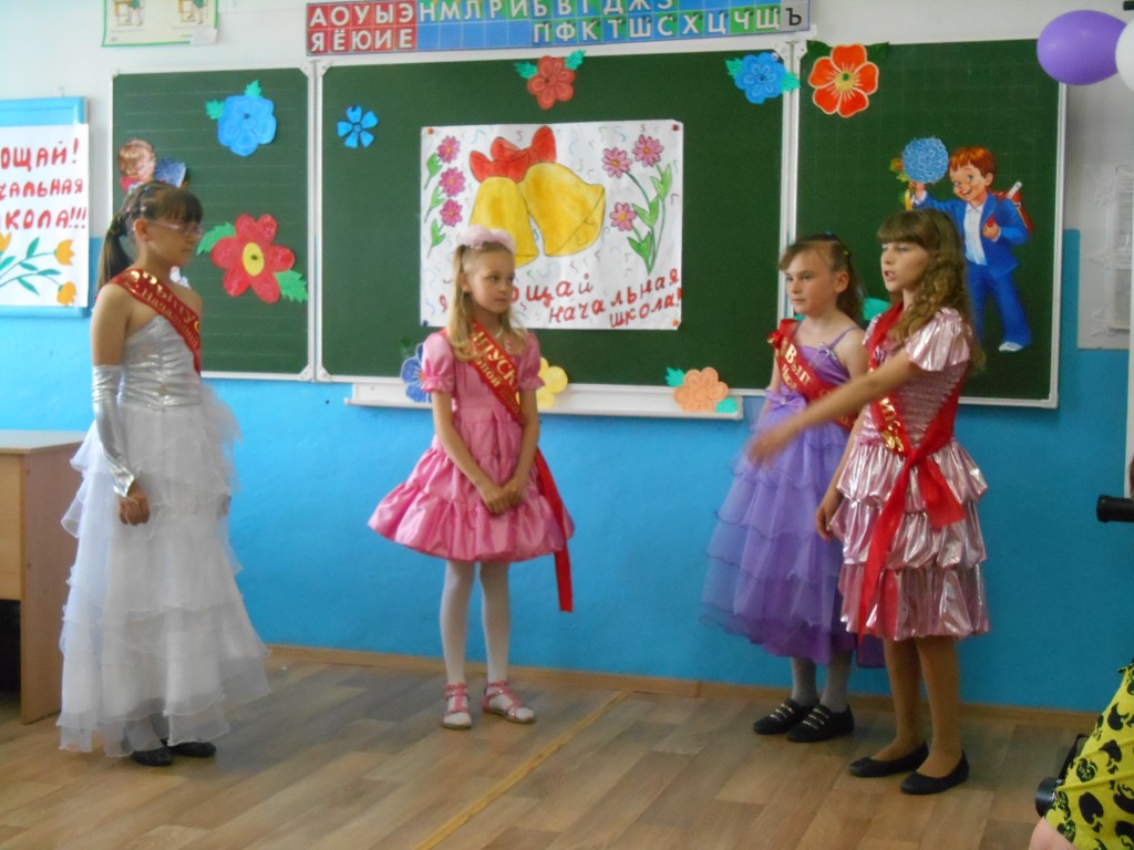 С этого стихотворения 28 мая Ибрагимова Р.Е., классный руководитель 4 класса, начала последний звонок «Прощай начальная школа». Сысунина Е.А. повязала ленты выпускникам и поздравила ребят с этим праздником. Директор школы Анкушева Л.Н. поздравила учащихся с окончанием начальной школы и подарила четвероклассникам небольшие подарки от школы. Учащиеся в знак благодарности своим учителям подарили цветы и номера художественной самодеятельности. Родители поблагодарили классного руководителя и вручили подарок. Выпускники показали концерт для приглашенных гостей.
