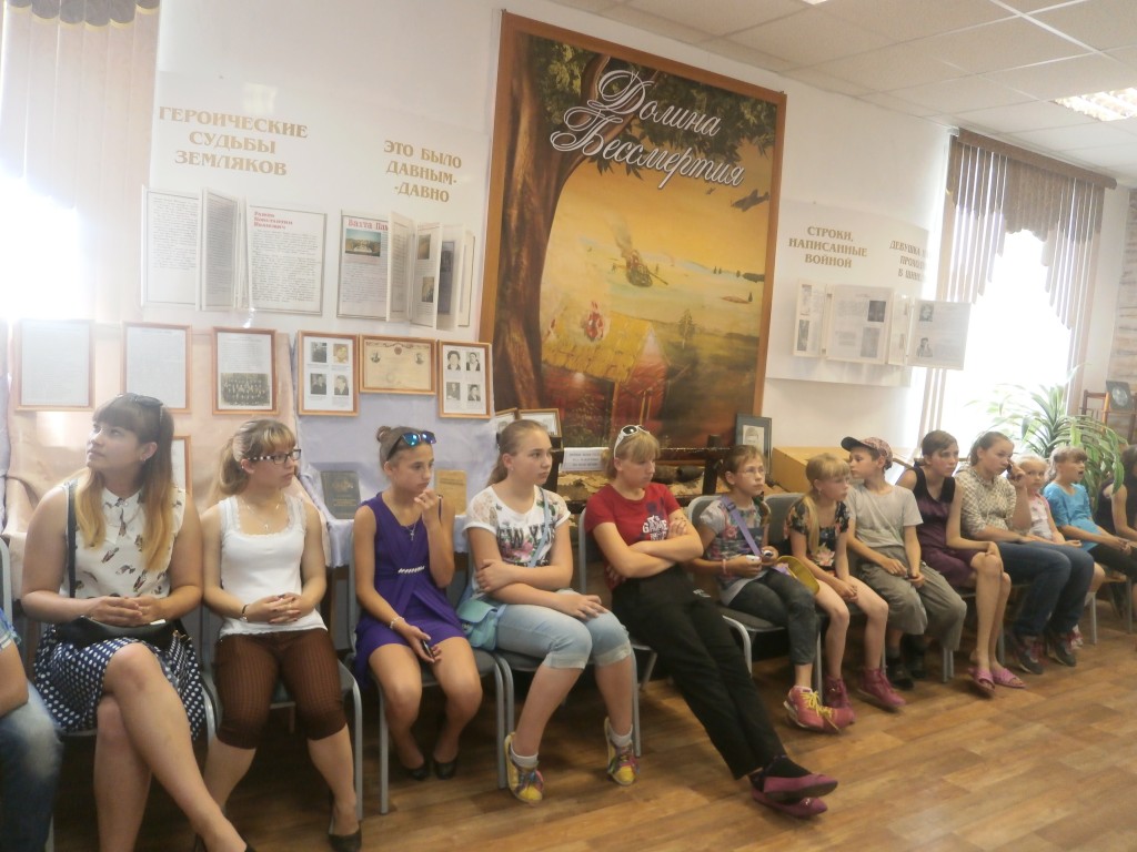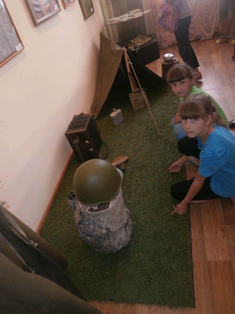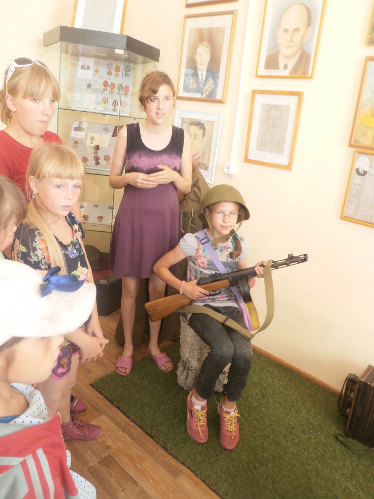 В этот же день ребятам была предоставлена возможность съездить в Голышмановский народный краеведческий музей. Дети побывали в нескольких комнатах: «Каменная книга рассказывает», «На лесной полянке», Зал Памяти, «Русская изба» (интерьер). Дети с удивлением слушали и задавали вопросы. Так же ребятам разрешили в одной из комнат примерить шлем, взять ружье, присесть на пенёк и сфотографироваться на память. После музея детей сводили к памятнику Великой отечественной войны «Вечная память войнам землякам».