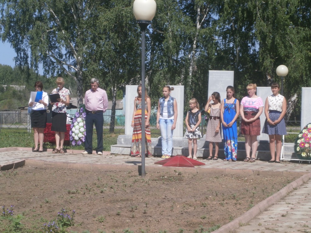 22 июня подошел последний день нашей смены. И все юнги со своими капитанами и боцманами открыли сказочную страну «Эльдорадо». Так как сегодня «День памяти и скорби» ребята были приглашены на митинг у обелиска «Живые, помните о нас». Одинцова Даша, Шуравина Лиза, Подсохина Света, Волкова Саша, Сысунина Маша, Леонтьева Лена и Анкушева Лиза прочитали стихи о войне.