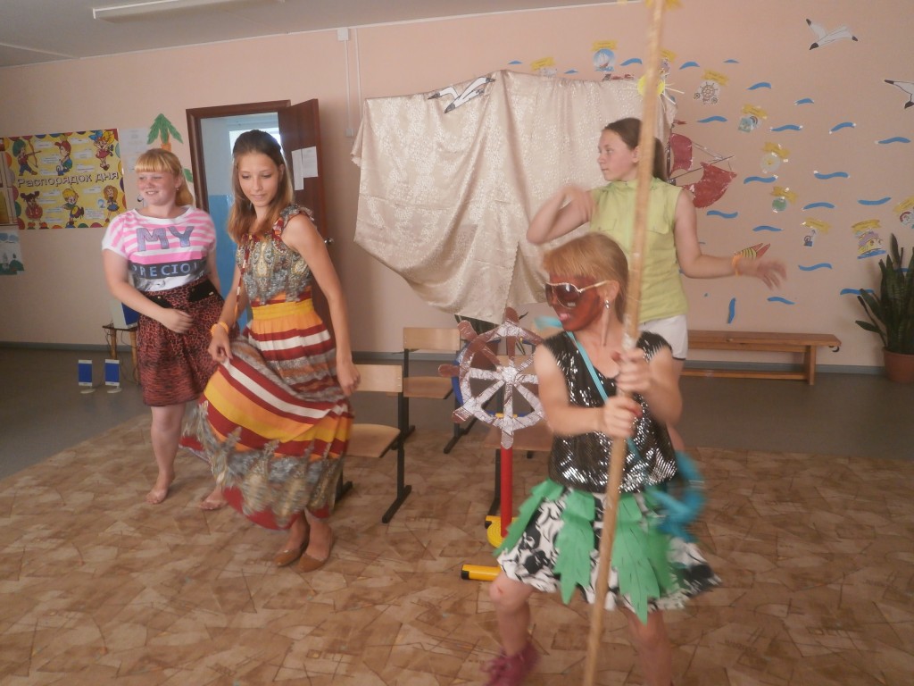 Во второй половине дня прошла игра-путешествие на остров сокровищ «Пиратский клад». Каждому отряду были розданы маршрутные листы с названием станции и местом нахождения заданий, последним заданием был поиск клада. После прохождения 4х станций, дети прибежали на последнюю, самую враждую станцию — «Поиск клада». Всеми усилиями юнги нашли клад – мешок конфет, который вручила начальник лагеря Ковалева А.Г.