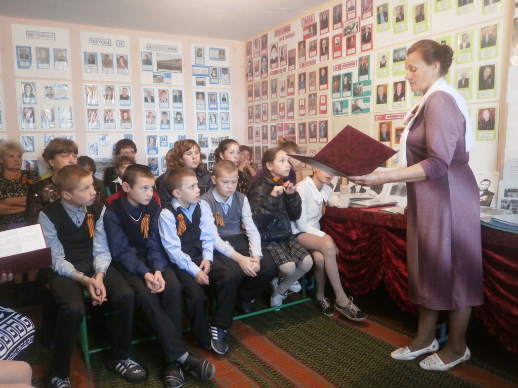 2 сентября в 5-9 классах прошел урок памяти «70-летие Победы в войне с милитаристской Японией. Колокола памяти». Данное мероприятие прошло в Слободчиковской музейной комнате, где были выставлены портреты земляков – участников войны с Японией. На встречу были приглашены дети и внуки участников войны с Японией, которые и поведали детям о подвигах своих родных: