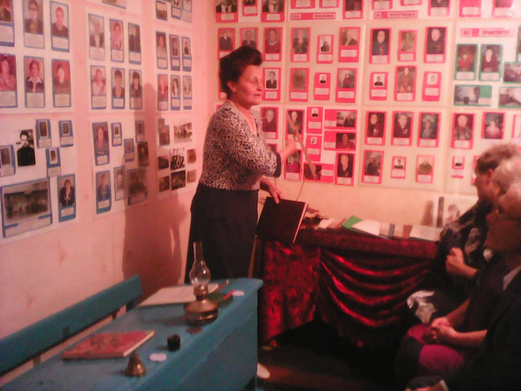 В начале мероприятия гости и педагоги школы побывали в Слободчиковской музейной комнате на презентации стенда «История школы», которую провела руководитель музейной комнаты Филева Н.П.