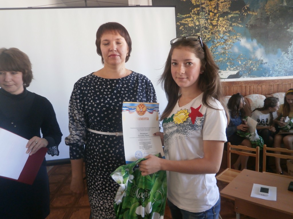 - «Лучший участник Трудового лета — 2015». В этой номинации наградили грамотой и памятными сувенирами двух участниц нашей школы – Сысунину Марию и Плесовских Жанну.