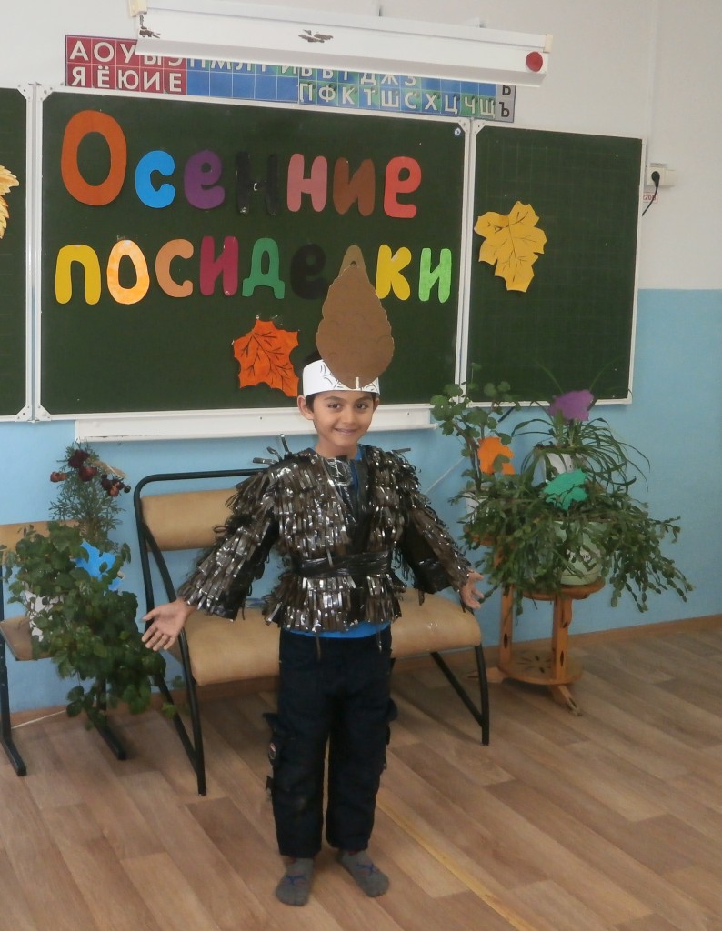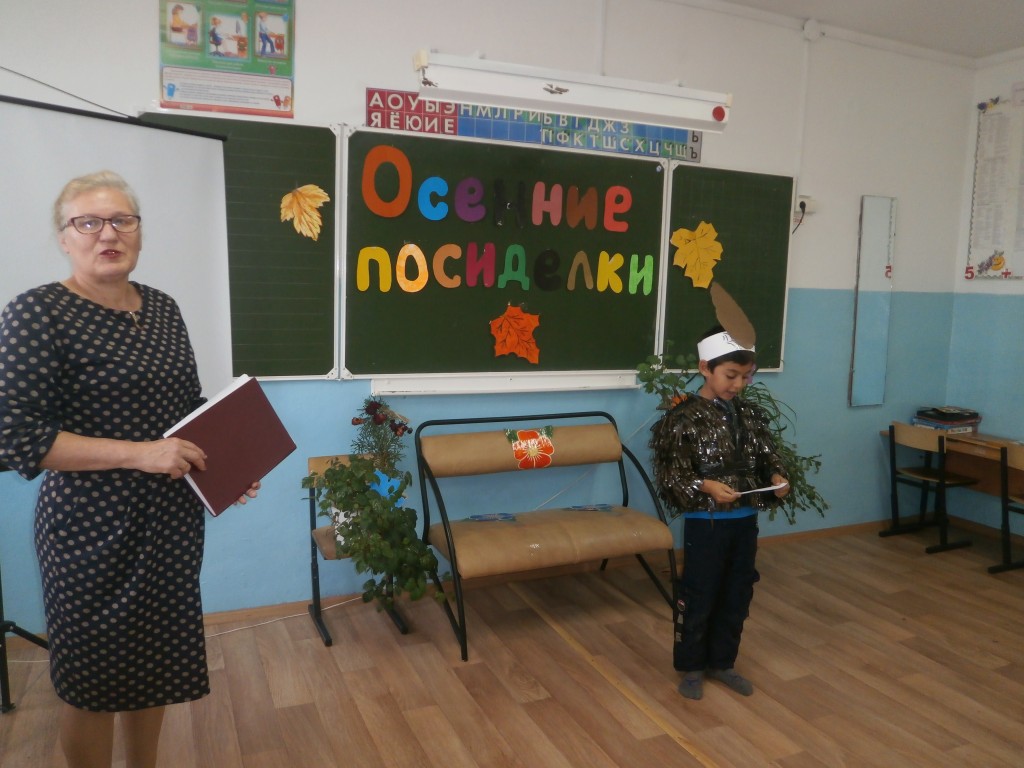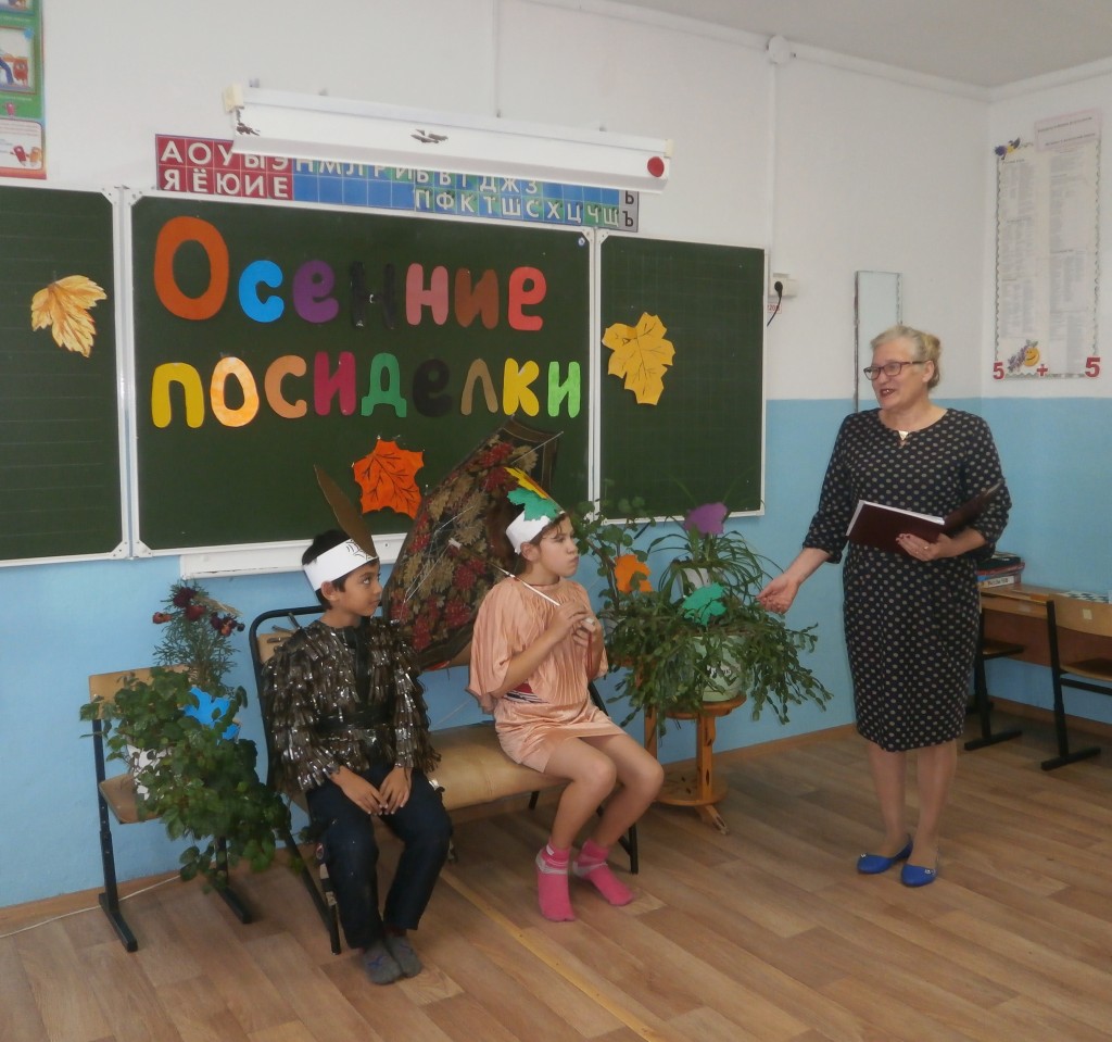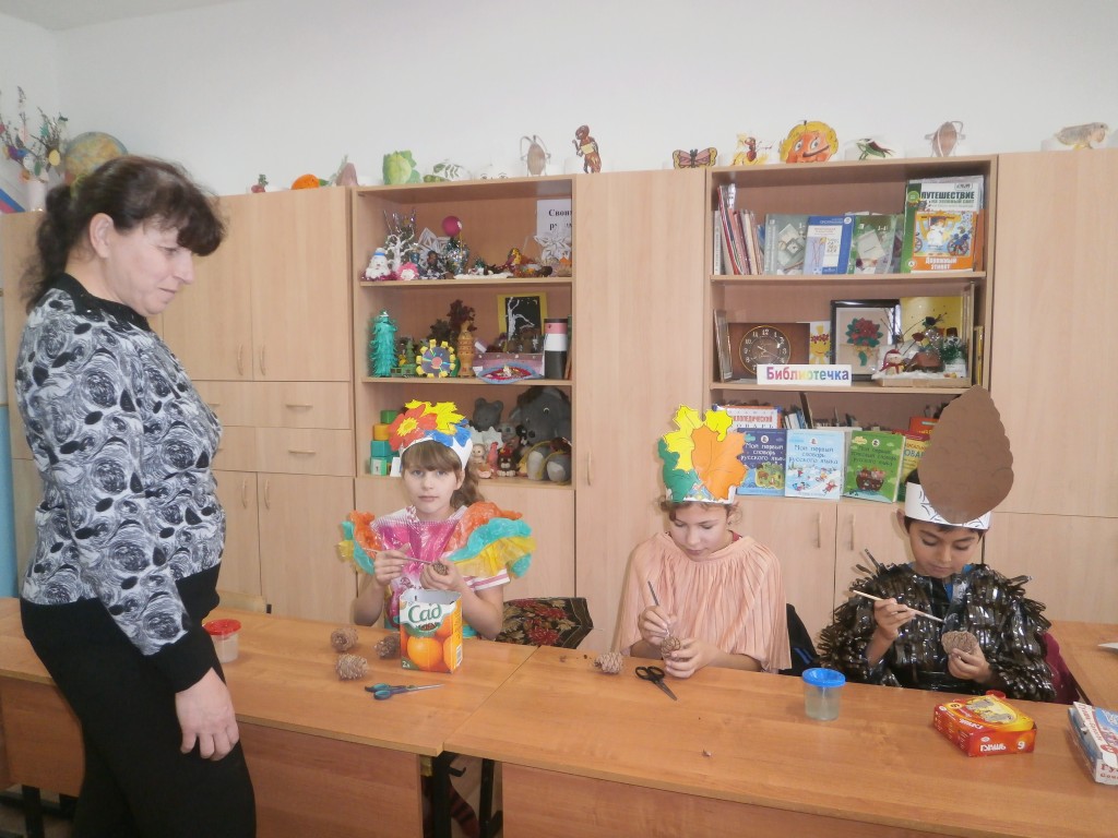 27 октября 2015 года в рамках каникул Кочневой Галиной Александровной было проведено мероприятие «Осенние посиделки» с целью развития творческих способностей детей через русский фольклор. Мероприятие открыл ученик 2 класса Канчурин Женя в роли Шишки. Ученицы 5 класса Ширшова Ксюша, исполняли роль Осеннего листочка и Петрушенко Юля – Цветка. В ходе мероприятия дети отгадывали загадки, пели песню «Осень в гости к нам пришла», показывали пантомимы. В заключение все желающие изготовили сувенир «Золотая шишка».