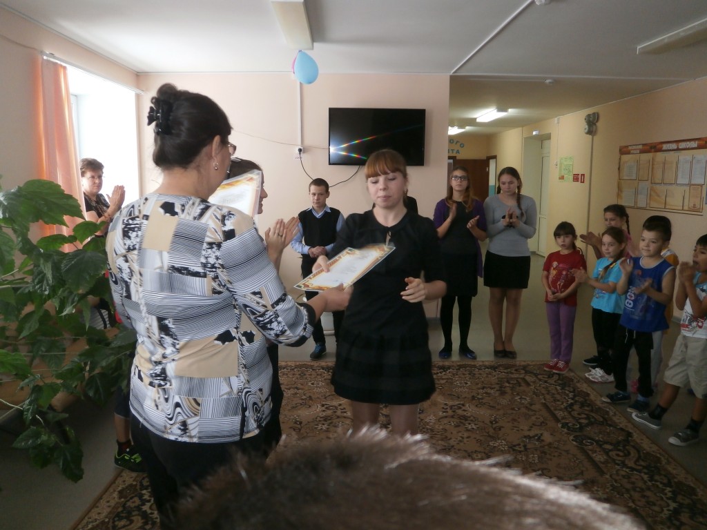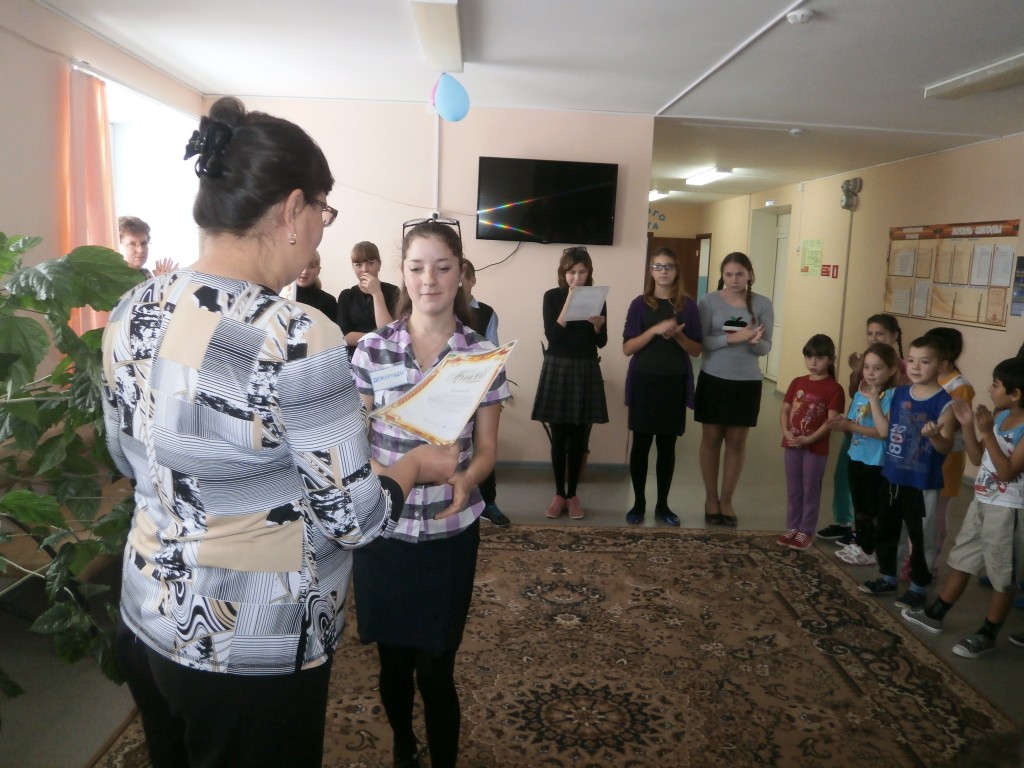 Также на линейке директор школы Анкушева Л.Н. вручила заслуженные награды (грамоту и подарок) участникам школьной агитбригады «ШАГ» по основам безопасности в Интернете, выступавшей на районном конкурсе агитбригад.