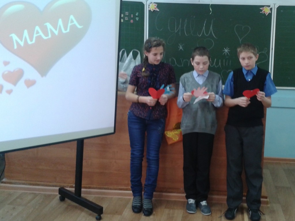 27 ноября ученики 6 класса поздравили своих мам с самым замечательным праздником. В адрес самых любимых людей на свете звучали теплые слова, дети дарили внимание и заботу, сувениры-сюрпризы. Мероприятие имело форму конкурсно-развлекательного шоу, в ходе которого «половинки – мама+ребенок» презентовали свою семью и ее традиции, проявили смекалку и артистичность, находчивость и сообразительность.