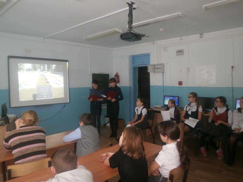 3 декабря среди учащихся 5-9 классов прошел урок памяти «Имя твое неизвестно, подвиг твой бессмертен» посвященной дате России – Дню неизвестного солдата. Данное мероприятие вели учащиеся 9 класса Сысунина Мария и Колбина Олеся. Девочки рассказали об истории праздника, об открытии мемориального комплекса «Могила неизвестного солдата», их рассказ сопровождался просмотром видеоматериалов: «Открытие архитектурного ансамбля – могилы неизвестного солдата» и «Смена почетного караула». В завершении мероприятия было предложено почтить память героя минутой молчания и просмотром видеоклипа «От героев былых времен».