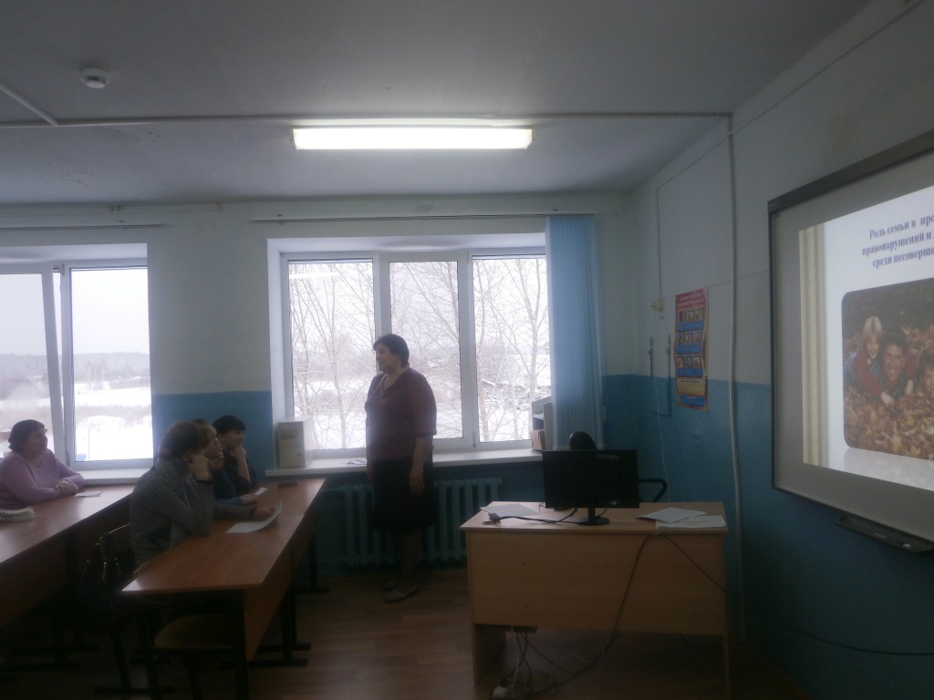 24 декабря состоялось общешкольное родительское собрание по теме: «Роль семьи в профилактике правонарушений и преступлений несовершеннолетних». На собрании директор школы Анкушева Людмила Николаевна и социальный педагог школы Макарова Наталья Анатольевна вели разговор с родителями о таких правонарушениях учащихся как воровство и детская агрессия. Родители на примере специально подобранных ситуаций выявляли причины правонарушений и преступлений, говорили о роли семьи в профилактике правонарушений. После обсуждения родители получили памятки с советами и рекомендациями по воспитанию детей.