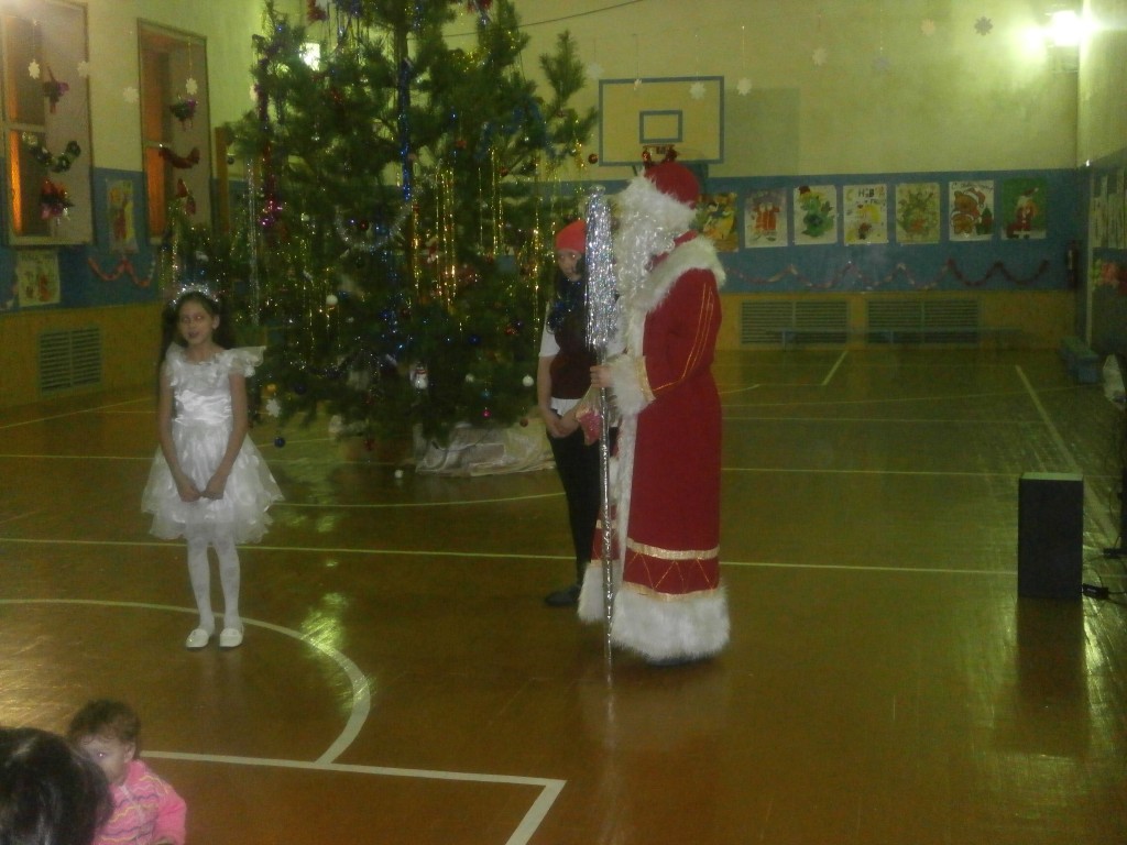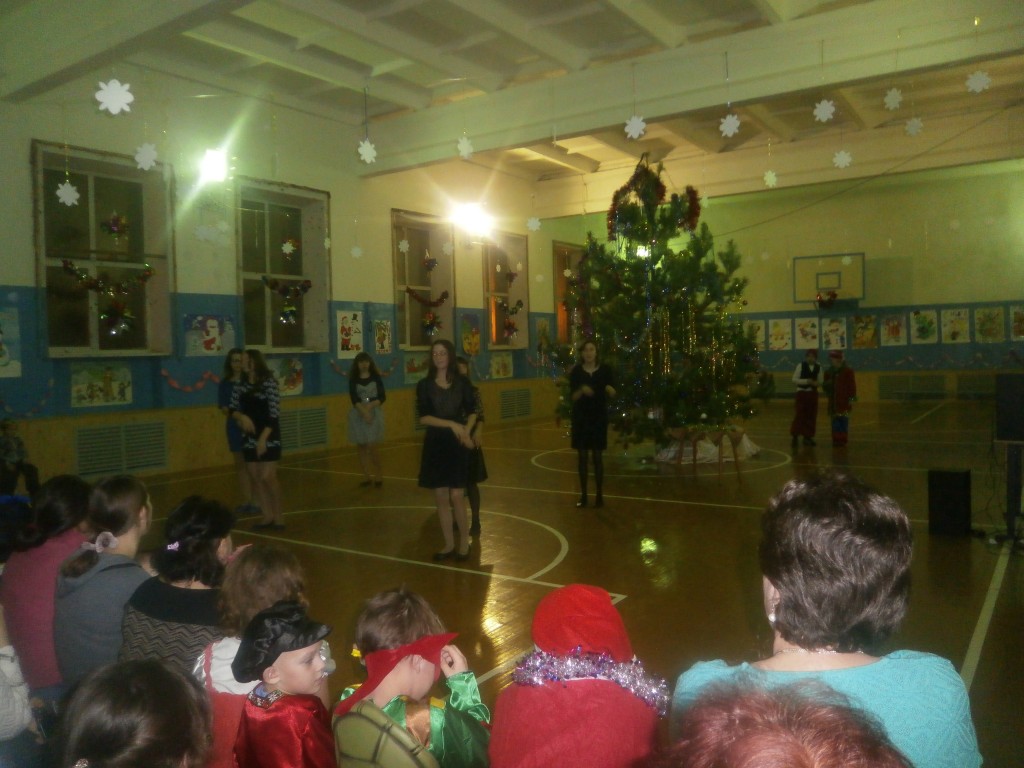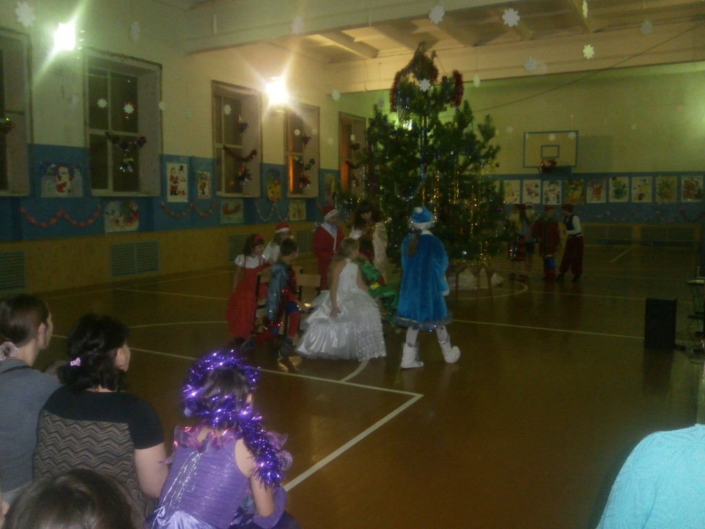Среди учащихся 1-9 классов прошло новогоднее представление «Приведения и гномы на новогодней елке». Каждый класс подготовил художественные номера, которые отличались массовостью и разнообразием. Дети на праздники пришли в карнавальных и сказочных костюмах. Дети пели, танцевали, водили хороводы, рассказывали Деду Морозу и Снегурочке стихотворения, играли в весёлые игры. За каждый номер Дед Мороз и снегурочка угощали ребятишек сладостями. В завершение праздника были подведены итоги конкурсов «Самый сказочный класс» и конкурс плакатов. А так же были награждены учащиеся на самый оригинальный костюм сделанный своими руками. И в заключении Дед Мороз подарил сладкие подарки каждому учащемуся школы.