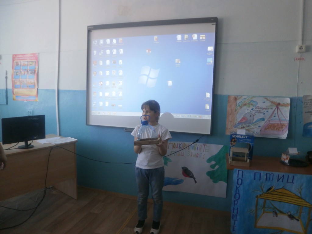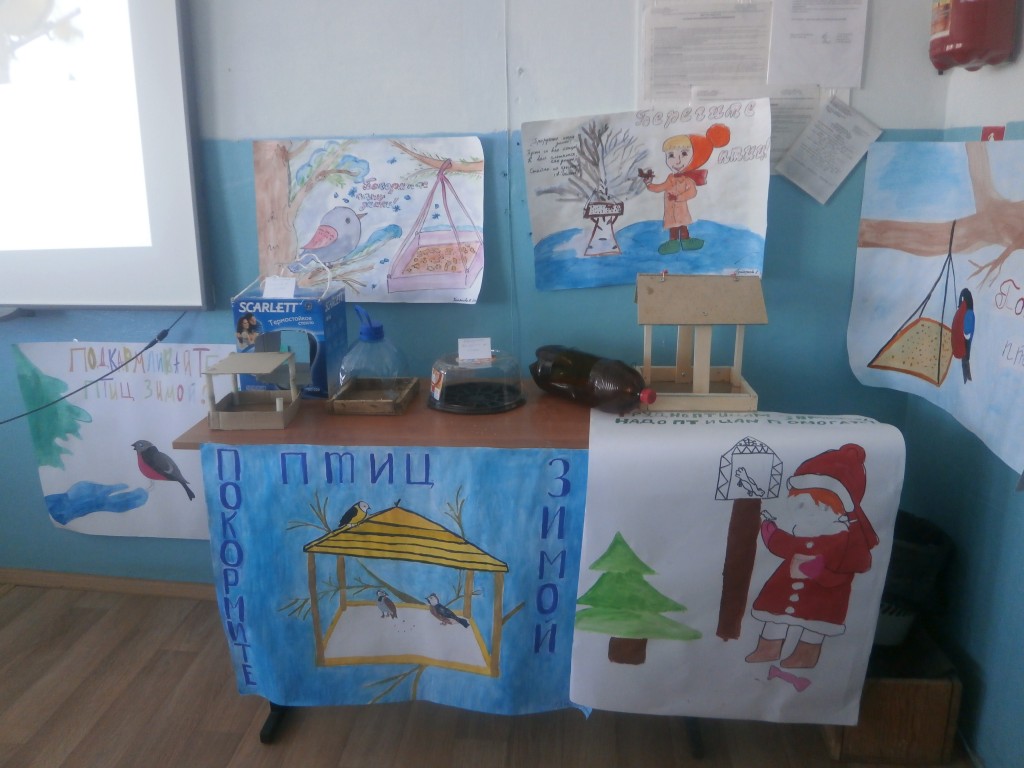 22 января в рамках свободной пятницы, в школе прошла экологическая акция «Покормите птиц зимой!». Мероприятие проходило с 1-9 классы. Каждый класс готовил плакат на тему защиты птиц и Канчурин Евгений учащийся 2 класса подготовил и защитил презентацию «Защитите птиц зимой». Так же учащиеся школы со своими родителями изготовили кормушки для птиц. В течение дня была организована выставка для детей и родителей «Лучшая кормушка для птиц». Победителем в конкурсе-выставке стала кормушка ученика 3 класса Ааба Юрия.