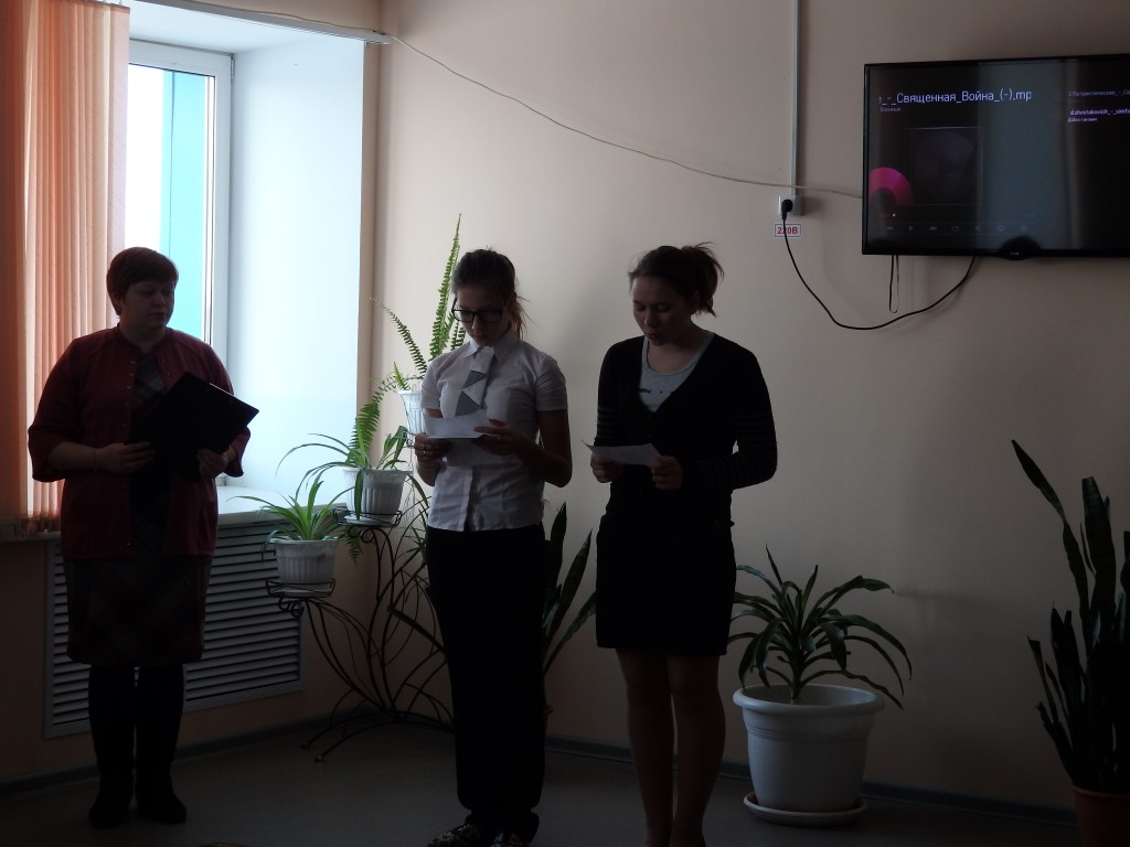 Мероприятие началось с прочтения стихотворения А.Твардовского «Война», на фоне звучания песни «Священная война». Далее с докладами о начале войны и блокаде выступили учащиеся 7-8класса: Одинцова Даша и Гудаева Маша.