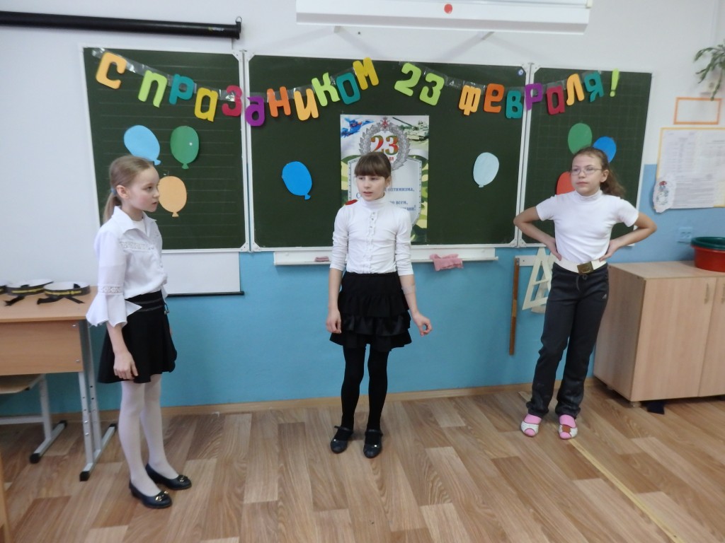 Утро началось с классных часов, где каждый класс подготовил конкурсную программу для своих мальчиков и поздравили их с праздником.