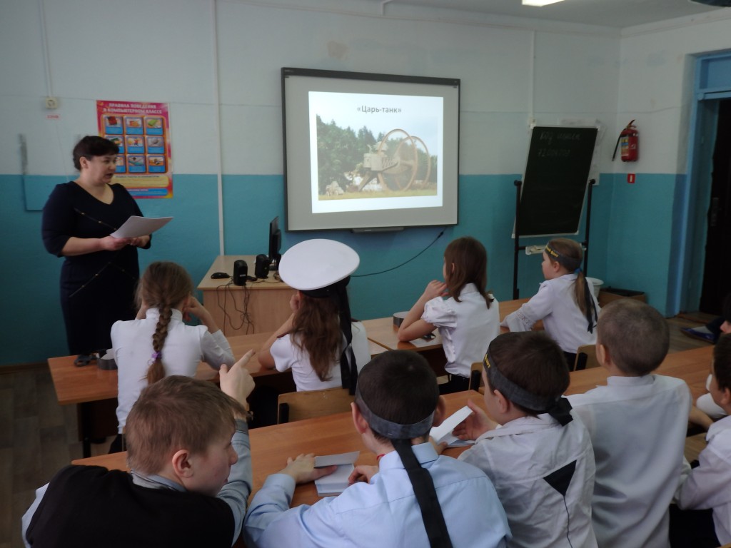 Затем педагог организатор Ершова Ольга Константиновна провела познавательный час «Самые необычные танки всех времён». Ольга Константиновна познакомила учащихся с не совсем обычными танками, такими как: «Танк Леонардо да Винчи», «Боевой квадроцикл», «Царь-танк», «Катающаяся крепость», сверхтяжелый танк «Maus», Сухопутный крейсер «Крыса», Летающий танк «Кристи» и др. Рассказ педагога организатора сопровождался презентацией, на которой был изображён каждый танк.