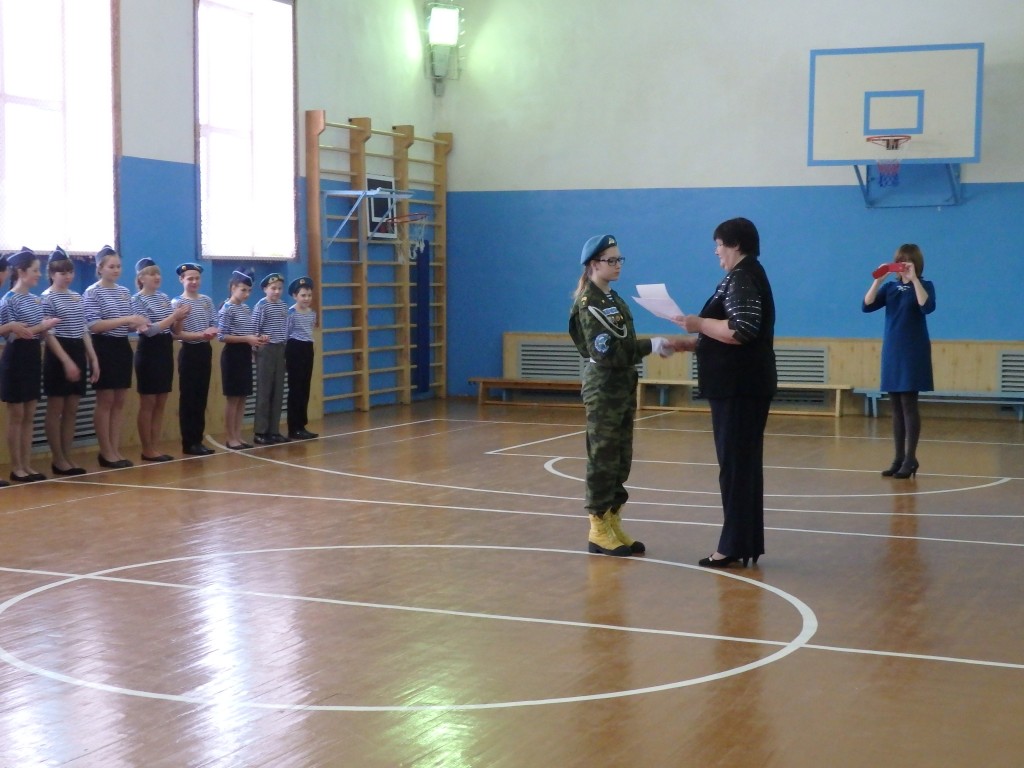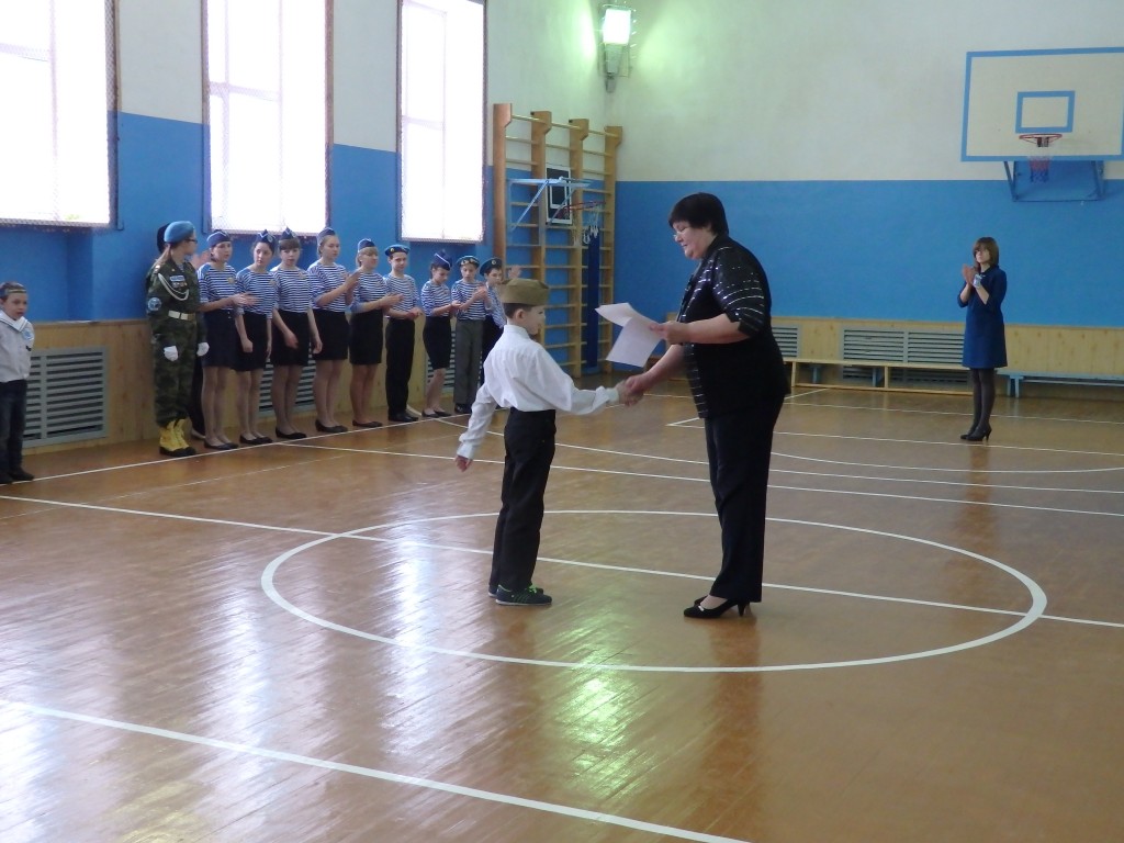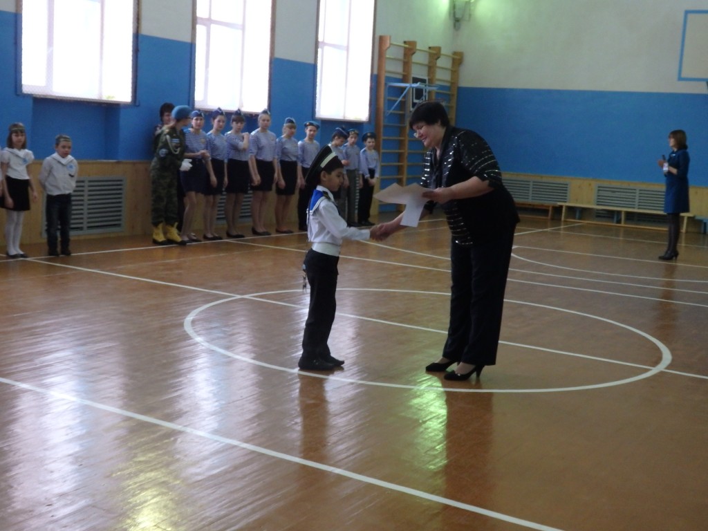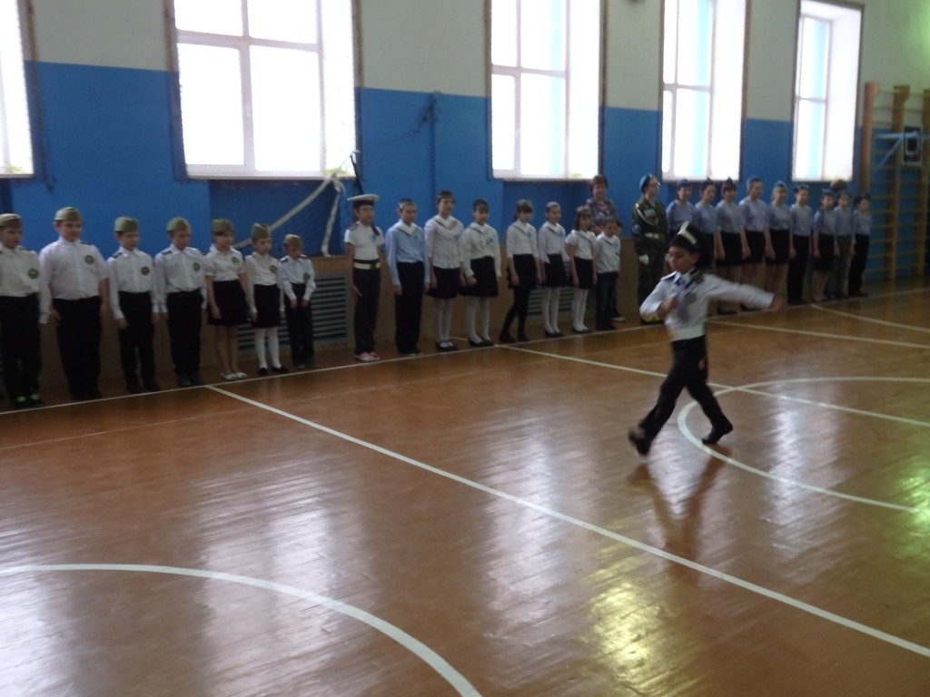 В этот же день в первые прошло мероприятие — Смотр-конкурс строя и песни. В конкурсе приняли участие учащиеся 1-9-х классов. В Смотре строя и песни оценивались: сдача рапорта, перестроение, повороты на месте, исполнение песни, дисциплина стоя, внешний вид и оценка действий командира. Все команды выступили достойно. Глаза ребят, выправка, взволнованные лица только доказывали искреннее понимание важности происходящего. Этот же настрой и боевой дух каждый отряд сохранил и в своем показательном выступлении. Компетентное жюри, состоящее из приглашенных пап и директора школы выявили победителей. Таким образом, 1 места среди учащихся среднего звена заняли 6-9 классы, 2 места — 5 класс, 1 место в младшем звене занял 2 класс и 2 место – 1 и 3 класс.