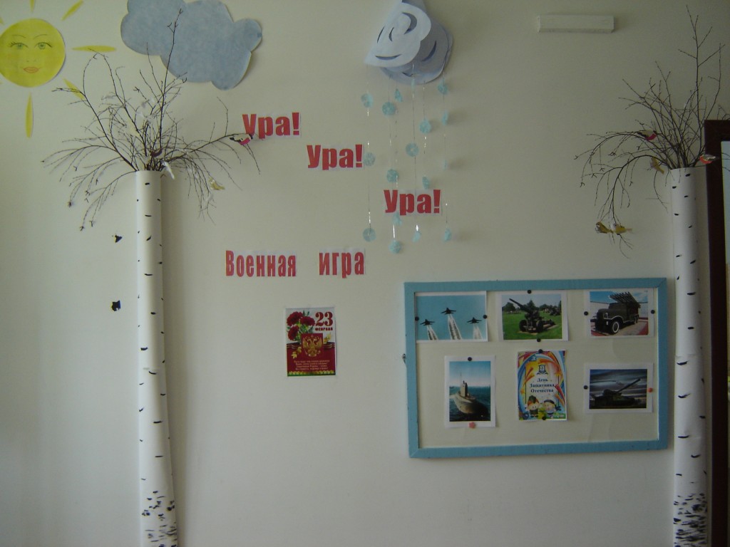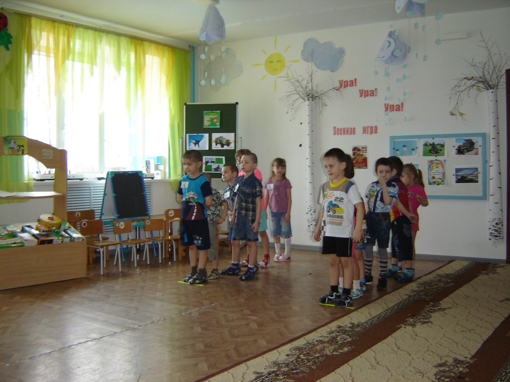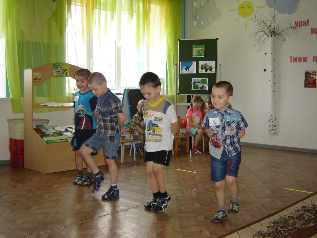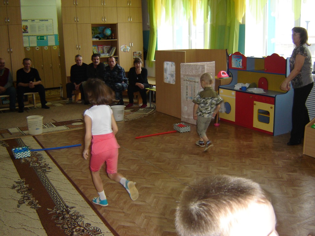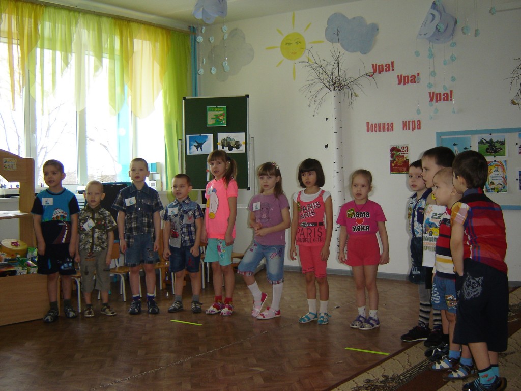19 февраля в старшей группе детского сада «Золотой петушок» прошла спортивная игра «Ура! Ура! Спортивная игра» посвященная Дню защитников отечества. В этот праздничный день приняли участие воспитанники детского сада и их родители в турнире будущих воинов, где проявили свою сноровку, смекалку, силу и выдержку. Мероприятие началось с представления команд: команда пограничников и команда моряков. В ходе игры дети вспоминали пословицы о дружбе и армии, пели частушки и песню «Манная каша», продолжали предложение и узнавали какие, военные профессии бывают в армии. А так же проходил конкурс с папами «Паровоз». В данном конкурсе папа бежал по команде, и брал за руку ребёнка, обегал с ним вокруг стула и бежали за следующем игроком. В завершение мероприятия всем ребятам вручили сладкие призы.
