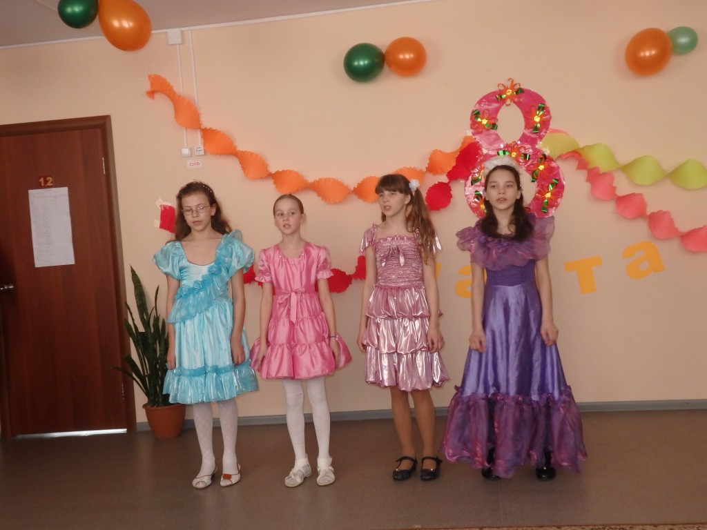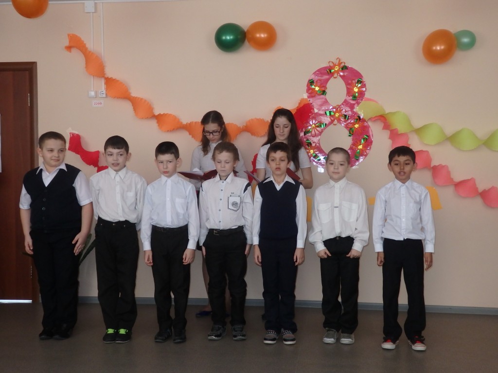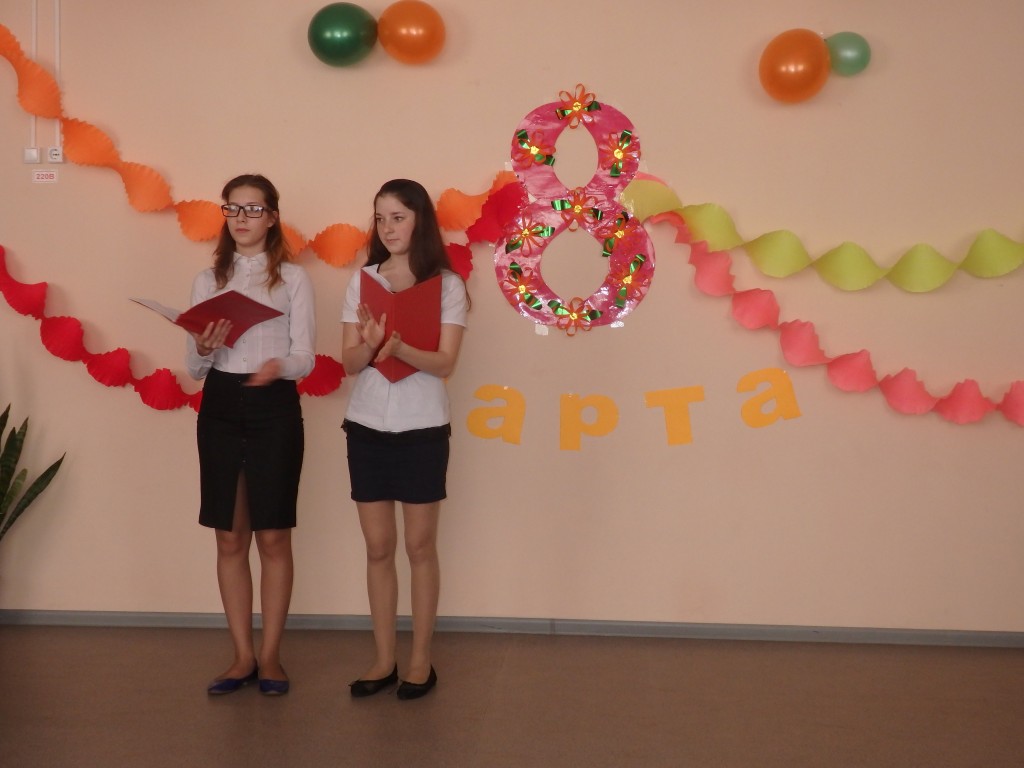 4 марта после всех уроков ученики школы с педагогом организатором Ершовой Олькой Константиновной показали праздничный концерт «Примите наши поздравления» посвященный Международному женскому дню – 8 Марта. Концерт начался со слов ведущих: «Празднование 8 Марта – это замечательная возможность выразить свою благодарность и безграничную признательность за все, что делают для нас наши женщины, за их любовь и понимание». В ходе всей праздничной программы учащиеся танцевали, читали замечательные слова в знак уважения к женщинам, пели песни «Женский праздник» и «Это все весна» и показали видеоклип «8 Марта».