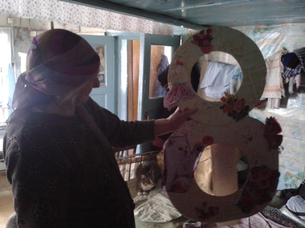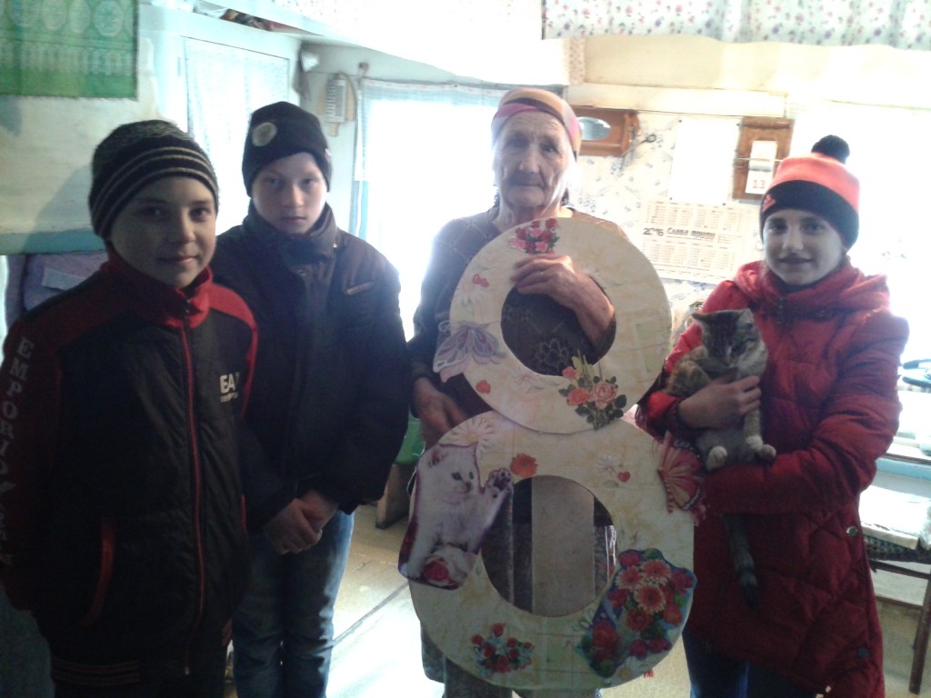 7 марта 2016 г. тимуровская команда «Доброе сердце» поздравила с 8 марта свою подшефную бабушку Боярских Анну Григорьевну. Ребята прочитали стихотворения, подарили открытку, сделанную своими руками, и оказали небольшую помощь.
