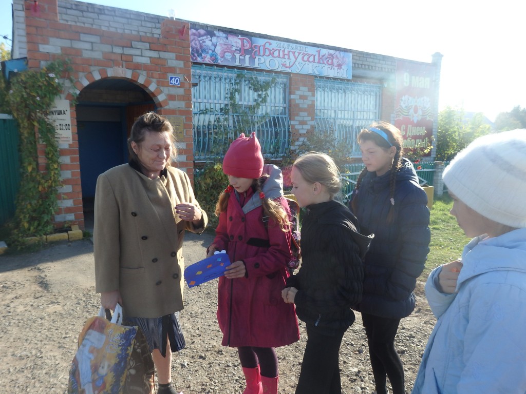 В честь Дня пожилых людей учащиеся 6 класса с классным руководителем Черемисовой О.В. провели акцию «1 октября — день добра и уважения», ведь именно в детском возрасте закладывается начало всему прекрасному, и, в том числе, любовь и уважение к старшему поколению. Во все времена пожилые люди ассоциировались с мудростью, большим профессиональным и жизненным опытом. К ним шли за советом, с них брали пример. С детства человек впитывает от старшего поколения народные традиции и мудрость, основы культуры и родной речи.