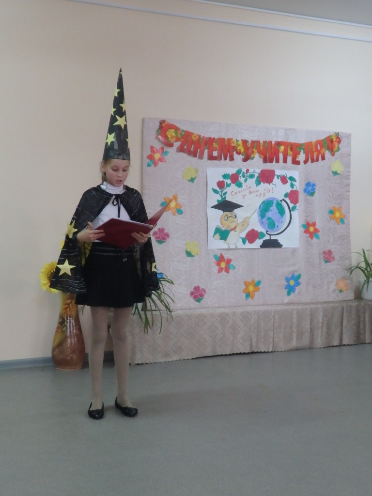 В нашей школе День учителя также один из самых любимых праздников. Учащиеся школы с радостью встречают учителей при входе в школу, дарят улыбки, подарки, цветы. В школе весь день звучит музыка, смех. И конечно, традиционным в это день является концерт, в котором принимают участие дети.