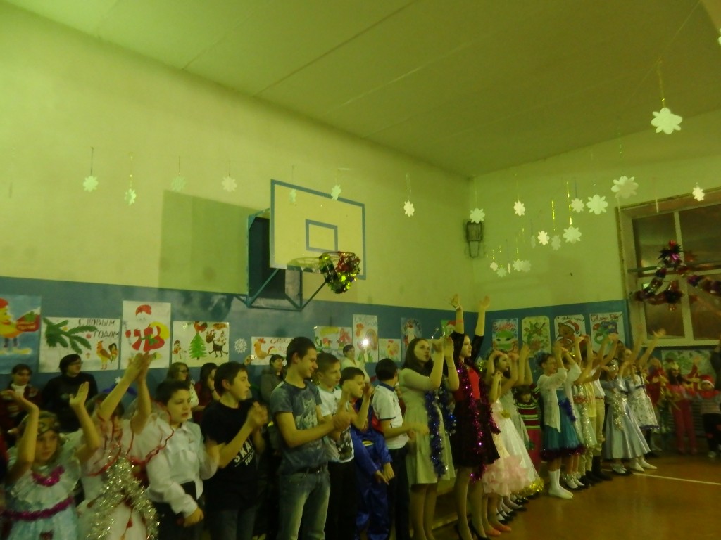 29 декабря в спортивном зале школы прошла новогодняя елка. Главный атрибут новогоднего торжества — красивая ель, разукрашенная разноцветными гирляндами, блестящими игрушками, красовалась в центре зала. Стены зала украсили новогодние плакаты, созданные учениками школы. Учащиеся долго готовились к этому празднику: делали новогодние украшения, шили костюмы, готовили номера художественной самодеятельности. Родители также принимали участие в подготовке мероприятия: участвовали в сценарии, проводили игры и конкурсы.