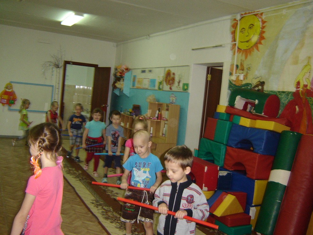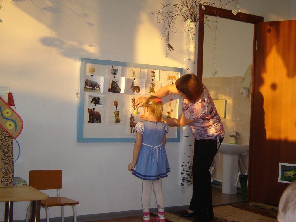 Завершением недели открытых дверей стало спортивное развлечение «В гостях у сказки». Целью этого развлечения было приобщение детей к здоровому образу жизни посредством театрализованной деятельности и физических упражнений. Сорока — белобока принесла весть детям о том, что Красная Шапочка по дороге к бабушке встретила волка и он держит её в своём логове. Дети решили идти её выручать. В этом им помогали лесные жители, предлагая дошколятам выполнить различные задания физической направленности. Дети ходили по мостику, пролезали через лисью нору, играли с медведем в подвижную игру, выполняли пальчиковые упражнения, лепили для волка пирожки. Красная Шапочка, после её освобождения, поблагодарила детей и угостила их яблоками.