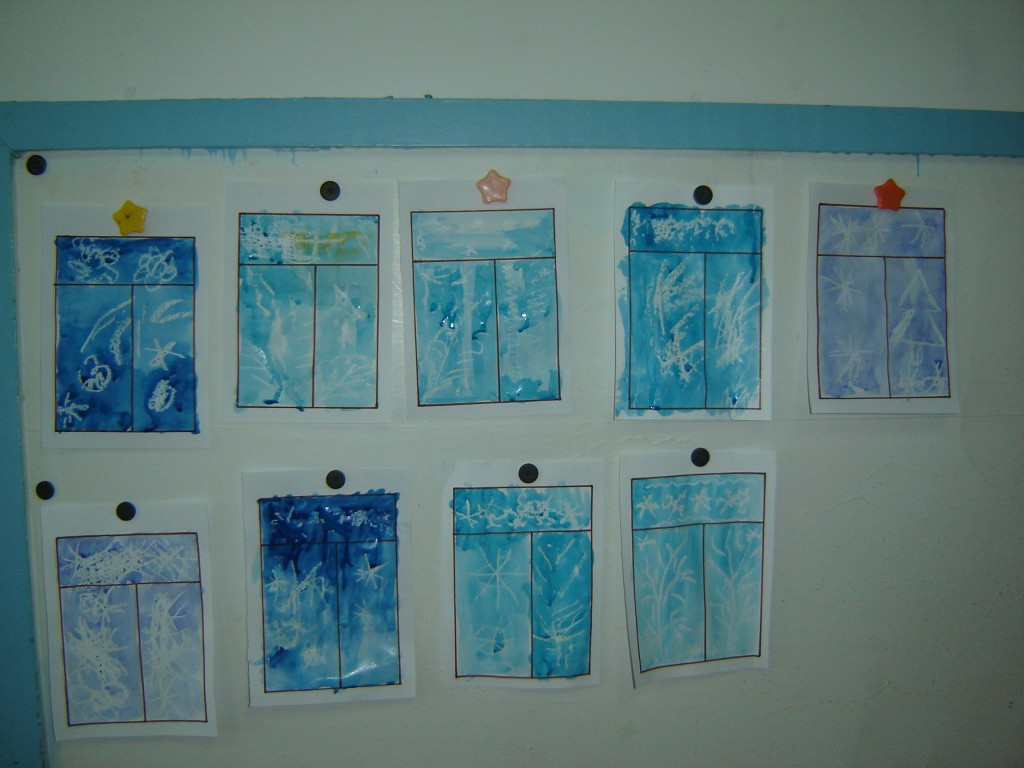 Старшие дошкольники познакомились с новым способом рисования – фотокопией (проявляющийся рисунок). Вместе с Морозом, который рисует на стекле, дети разрисовывали окна различными узорами.