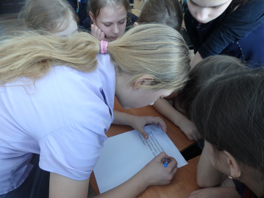 После ребятам было предложено показать свои знания в русском языке, для чего они разделились на две команды и выполняли предложенные задания. Победу одержала команда «Умники».