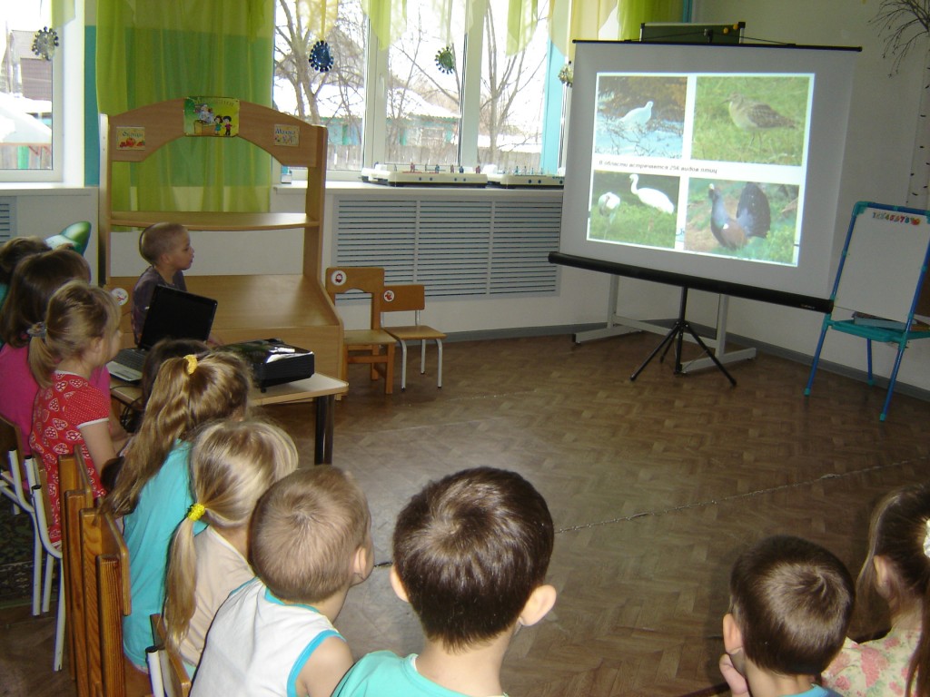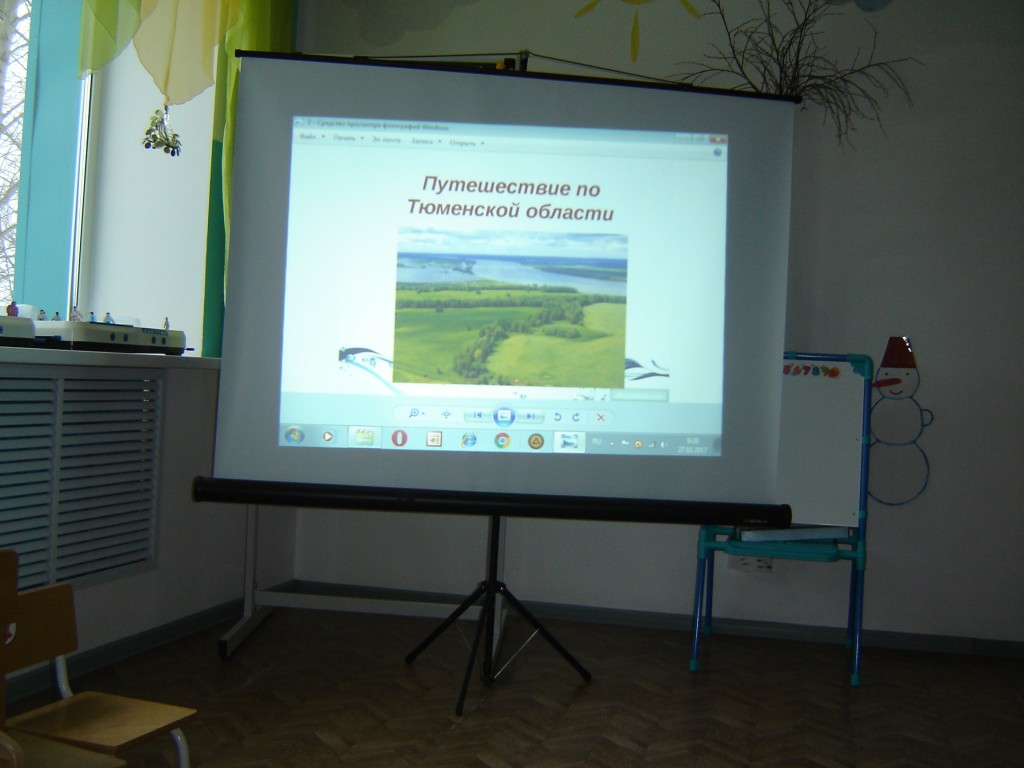 В рамках единого урока «Путешествие по Тюменской области» было проведено занятие по ознакомлению воспитанников с окружающим миром. Детям старшей группы была показана презентация «Родной свой край люби и знай». Дети знакомились с достопримечательностями родного края, отгадывали загадки о животном и растительном мире, познакомились с национальными костюмами людей, проживающих на территории Тюменской области. Дошколята с интересом рассматривали символику своего родного края, запоминали, что обозначают символы на гербе и флаге Аромашевского района. Дети узнали, какие животные и растения занесены в Красную книгу. Также детей заинтересовала красочно иллюстрированная книга «Тюмень. Утро нового дня», где они могли рассмотреть красиво оформленные фрагменты из истории Тюменской области. В конце занятия детям были предложены раскраски по теме.