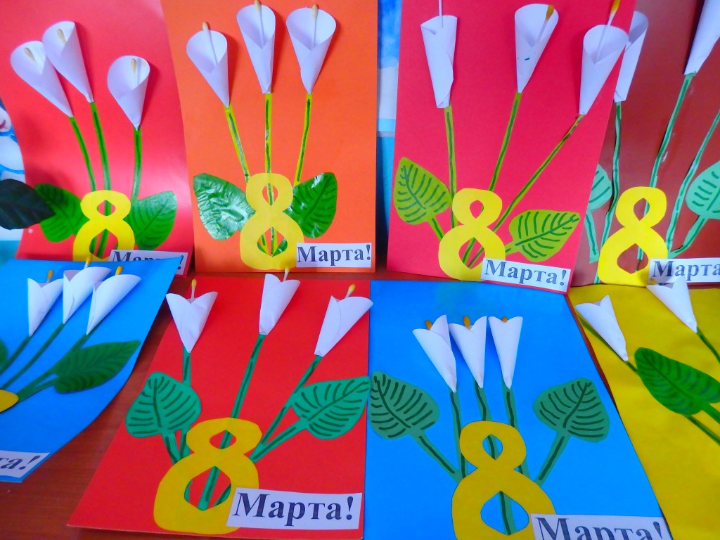 Самый любимый человек для каждого ребёнка-это мама. Мамы достойны самых лучших подарков. Ученики 1,3 классов приняли участие в акции «Поздравительная открытка». Для мам они сделали подарки своими руками открытки «Каллы». Этот цветок – уникальное творение природы. Он означает божественную красоту, восхищение, любовь. Поэтому ребята с особым старанием изготавливали оригинальные открытки, которые преподнесли 3 марта накануне женского дня-8 Марта.