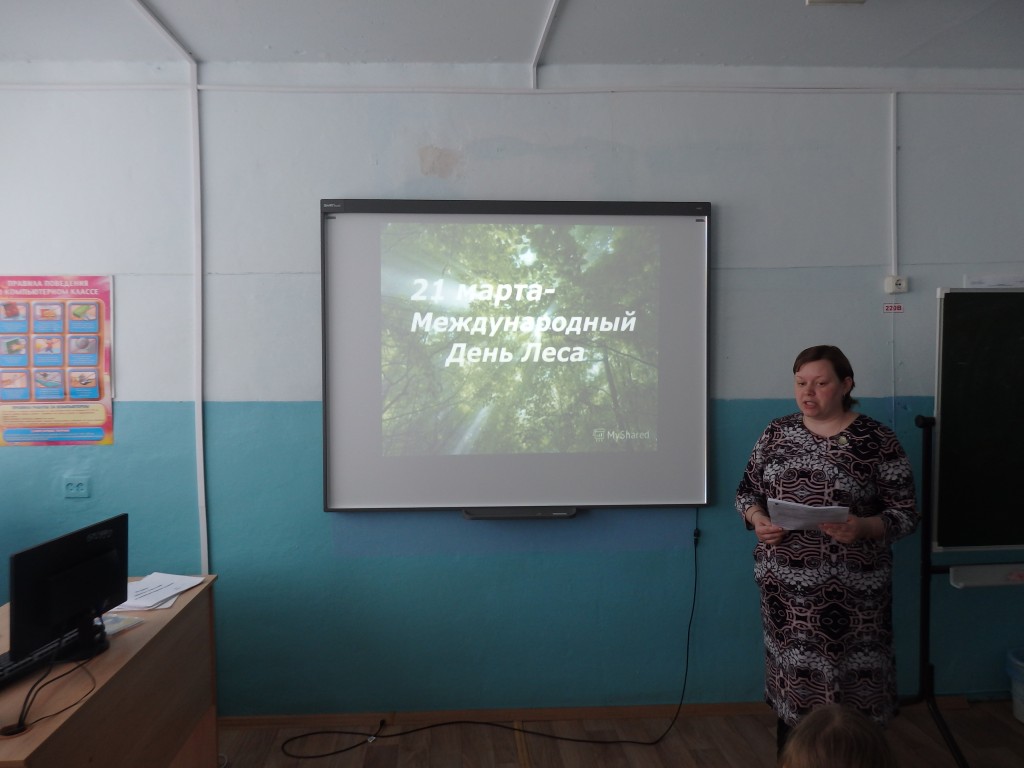 21 марта в Международный день леса, для учащихся Слободчиковской школы библиотекарем Слободчиковской сельской библиотеки Константиновой А.С. проведен экологический час «С заботой о лесе».