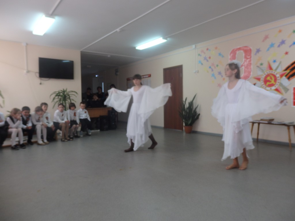 Всего сказать не удастся никогда, потому что нет меры героизму людей, проявленному в войне, нет меры горечи и страданию. Именно об этом говорили ведущие подрастающему поколению. Вспоминали тех, кто не дожил до Победы, поклонились тем, кто после войны налаживал мирную жизнь. Звучали стихи, песни в записи: «Священная война», «День Победы», в исполнении детей: «Идёт война…», «А закаты алые…», «Я видела войну только в кино», танец «Журавли».