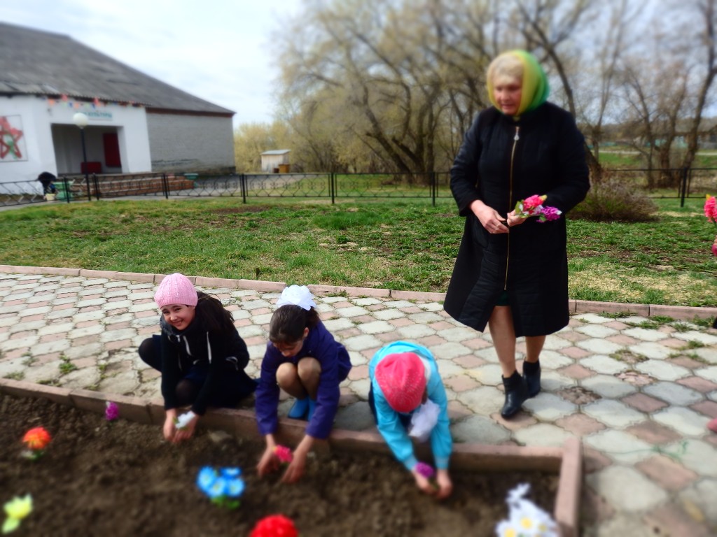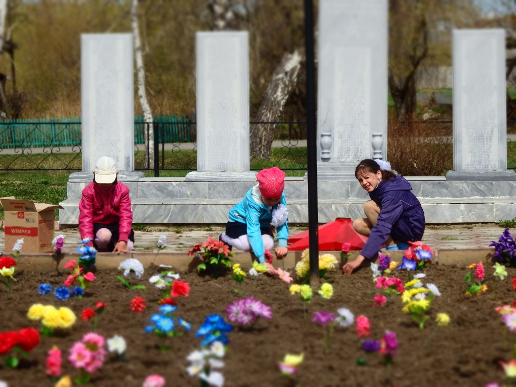 5 мая учащиеся 1,3 классов совместно с ветеранами Слободчиковской первичной организации приняли участие в благоустройстве обелиска к 9 мая. Они убрали сухую траву, облагородили цветник, украсив его искусственными цветами.