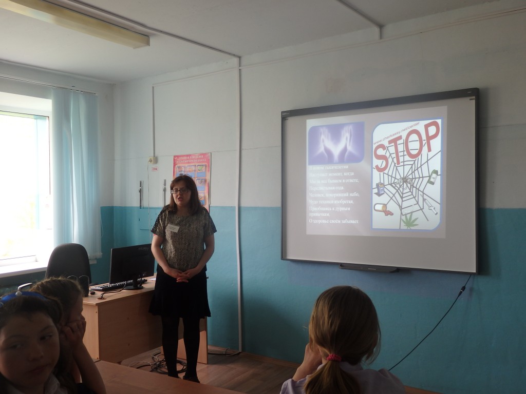 19 мая социальным педагогом Макаровой Н.А. для учащихся школы был проведен классный час «Вредным привычкам скажем нет», посвященный Международному дню борьбы с пьянством и Международному дню без табака.