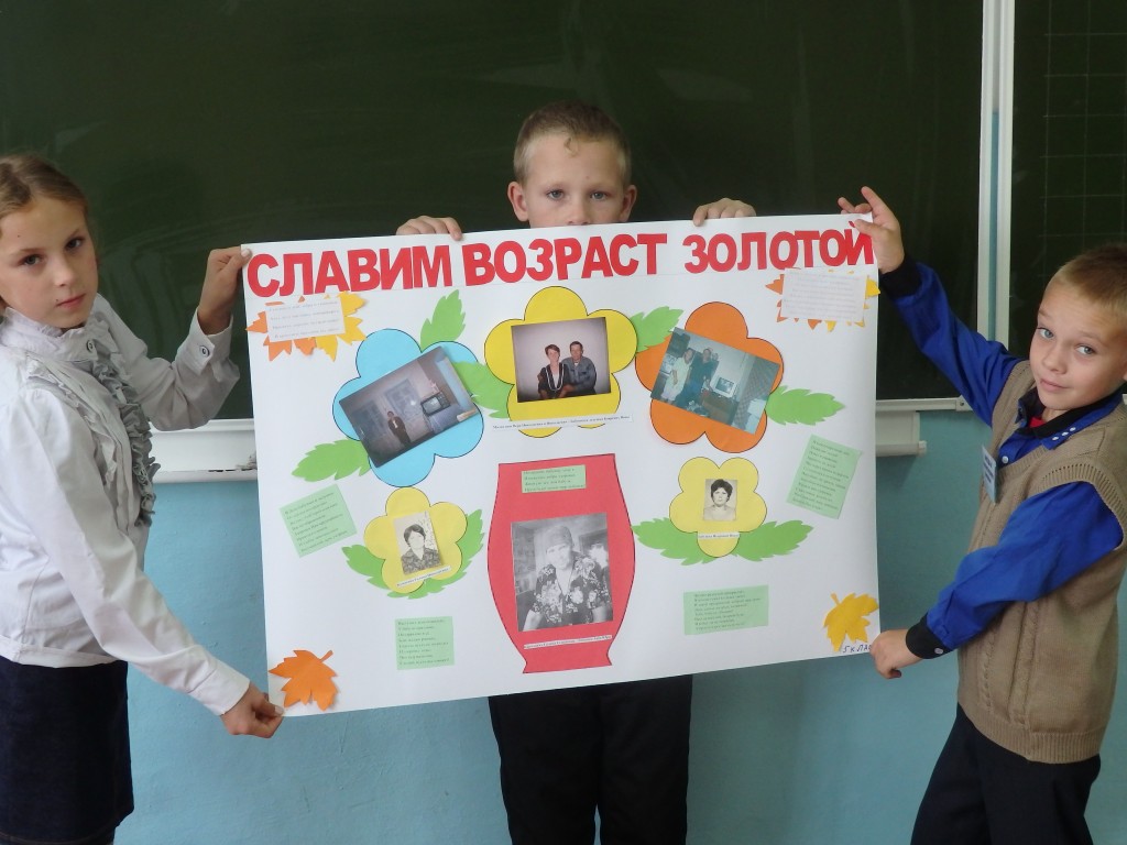 Есть в октябре замечательный и добрый праздник – День пожилых людей. В этот день мы окружаем особым вниманием наших бабушек и дедушек. В рамках этого праздника в школе прошла акция «Почта добра». Школьники 1-4 классов изготовили открытки своим бабушкам и дедушкам и поздравили их с этим событием. Обучающиеся 5,7,8 классов приняли участие в выставке стенгазет «Славим возраст золотой». Волонтеры со своим руководителем и председателем Совета Ветеранов посетили на дому пожилых людей, нуждающихся в заботе, и поздравили их с праздником.