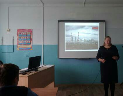Информационный час был проведен в форме виртуальной экскурсии по одному из мегасооружений России, которое находится в нашем регионе, в городе Тобольске. Это третий полимерный завод в мире. Вкратце рассказана технология переработки нефтяного газа, и получение полипропилена, из которого сделана примерно половина вещей домашнего обихода и не только. Так же ребята были познакомлены с востребованными рабочими профессиями на данном предприятии, освещены важные вопросы по технике безопасности на заводе-гиганте и меры экологической безопасности для жителей.