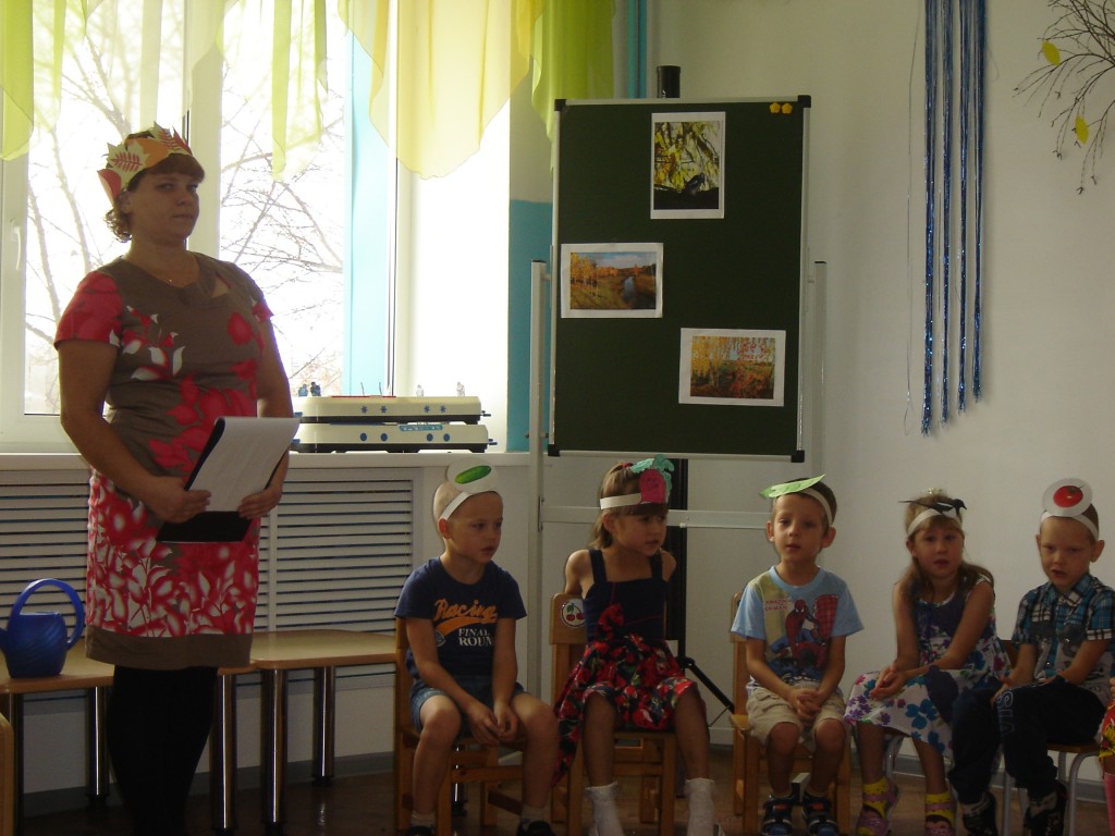 27 октября в старшей группе «Солнышко» прошло развлечение «Осень в гости к нам пришла». Дети рассказывали стихи, водили хороводы, пели песни. Дошкольники разыграли шуточную сценку «Огород», в которой показали, как овощи спорили о том, кто из них лучше. В гости к детям пришла Осень и помирила их всех. Она загадывала загадки, устраивала весёлые соревнования и в конце праздника подарила всем корзинку с яблоками. Дети поблагодарили Осень и пригласили её в гости на следующий год.